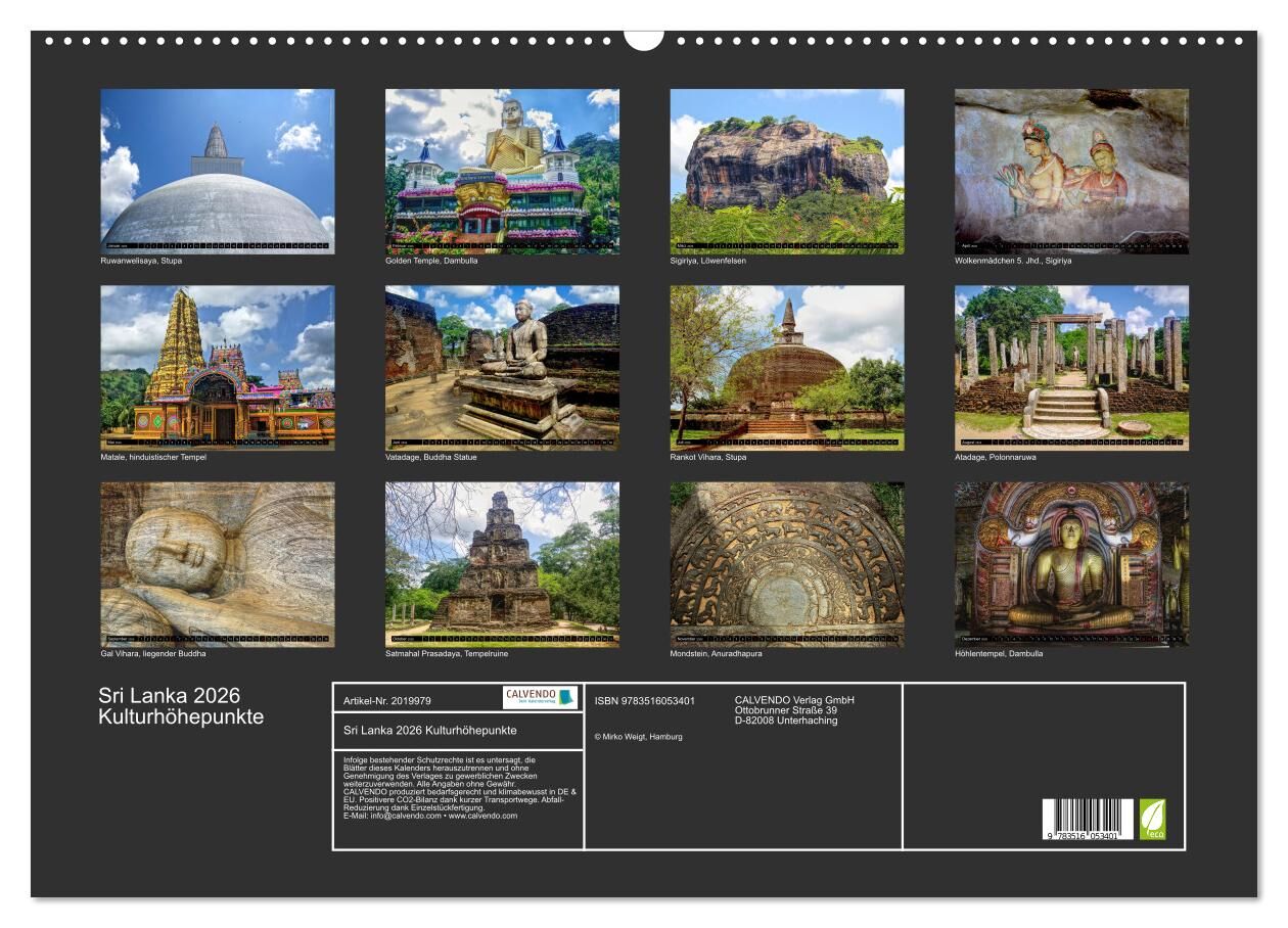 Sri Lanka 2026 Kulturhöhepunkte (Wandkalender 2026 DIN A2 quer), CALVENDO Monatskalender