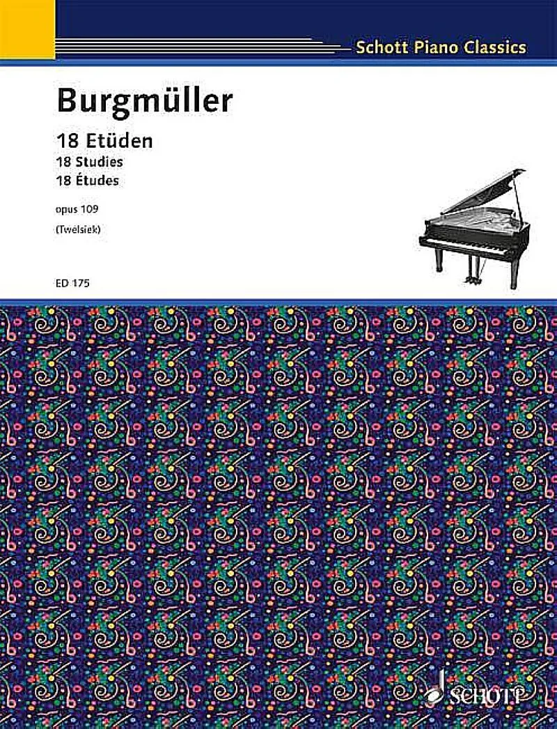 Die 18 Etüden op. 109 nehmen durch ihren melodischen und klanglichen Reiz den Spieler unmittelbar für sich ein. Burgmüller gelingt es hier, technische Probleme mit einem ansprechenden musikalischen Einfall zu verknüpfen. Die Fantasie des Spielers wird durch di...