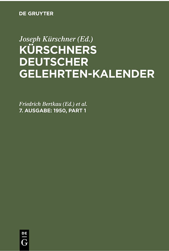Keine ausführliche Beschreibung für "1950" verfügbar. Inhalt Frontmatter -- INHALT -- Vorwort -- Redaktionelle Bemerkungen und Abkürzungen -- Verzeichnis der Gelehrten -- A -- B -- C -- D -- E -- F -- G -- H -- I -- J -- K -- L -- M -- N -- O -- P --...