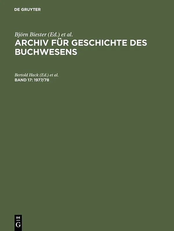 Keine ausführliche Beschreibung für "1977/78" verfügbar. Klappentext Das Archiv für Geschichte des Buchwesens (AGB) wurde 1956 begründet. Das Archiv ist die zentrale wissenschaftliche Zeitschrift für die Buchwissenschaft sowie für die Buch- und Buchh...