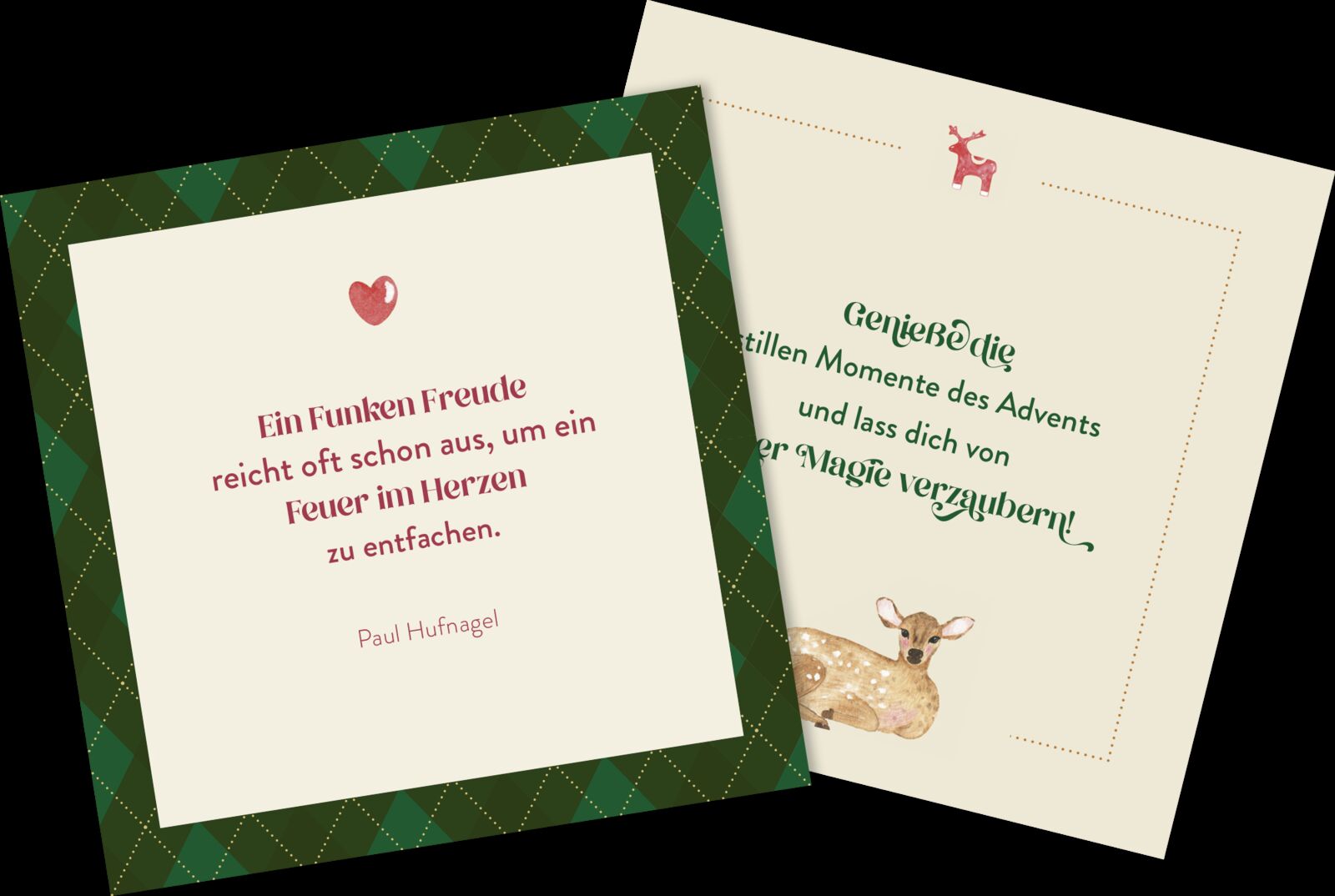 Adventskalender-Box mit 24 lieben Wünschen und Sprüchen 24 liebe Wünsche, die von Herzen kommen: Gerade in der Adventszeit sind wir gern mit unseren Lieblingsmenschen beisammen und wollen sie wissen lassen, dass wir an sie denken. Diese Adventskalender-Box en...