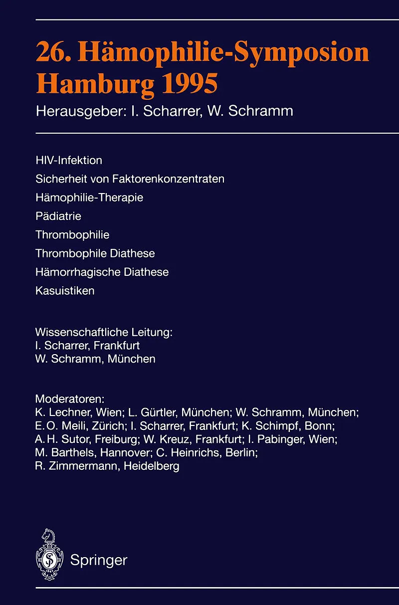 Der nunmehr vorliegende Band des 26. Hämophilie-Symposiums fand wiederum unter Mitwirkung zahlreicher namhafter Internisten, Dermatologen, Transfusionsmediziner, Pädiater und Immunologen statt. Schwerpunktthemen des Symposiums waren die HIV-Infektion, insbeson...
