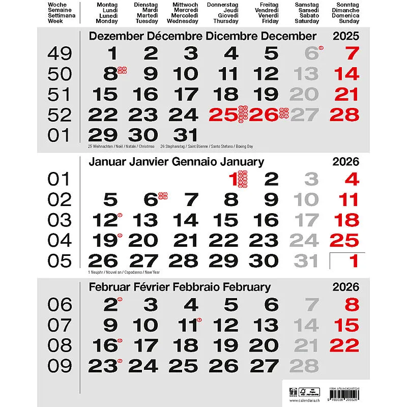 3-Monats-Kalender grau 2026