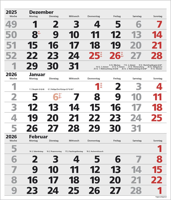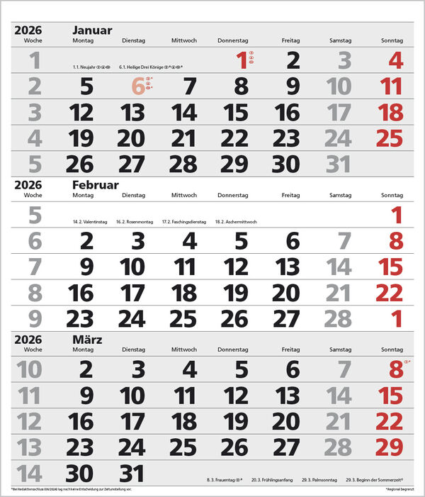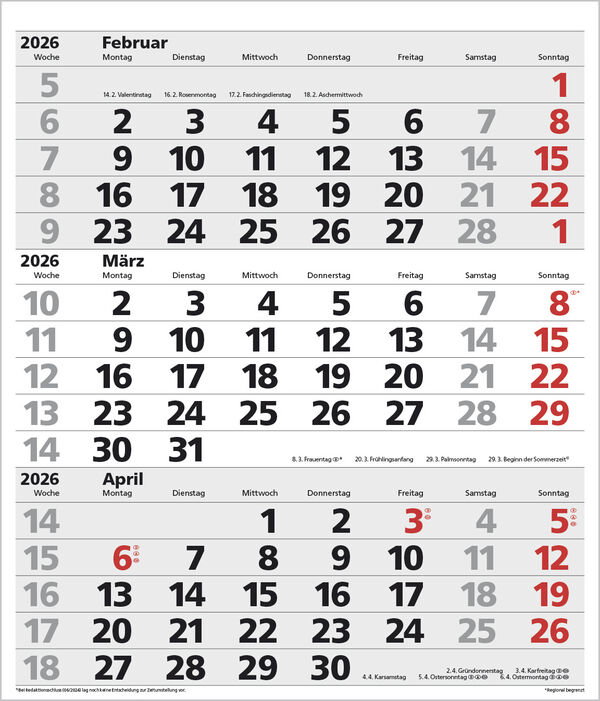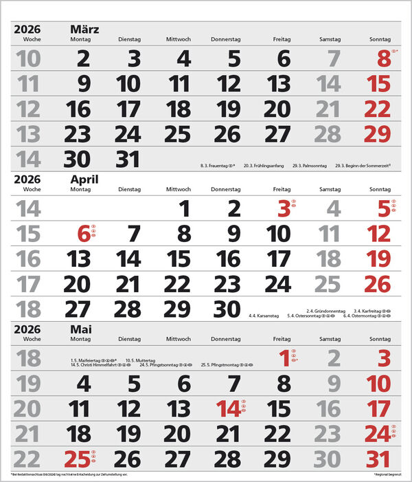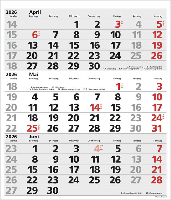 Produktmerkmale Extragroßes Format: 38,5 x 45 cm 1 Seite 3 Monate im überblick; umweltfreundliches FSC Papier. Kalendarium auf D/E/F/I mit farblich hervorgehobenen Feiertagen für Deutschland, Österreich und Schweiz. Praktische Ringbindung zum einfachen Umblät...