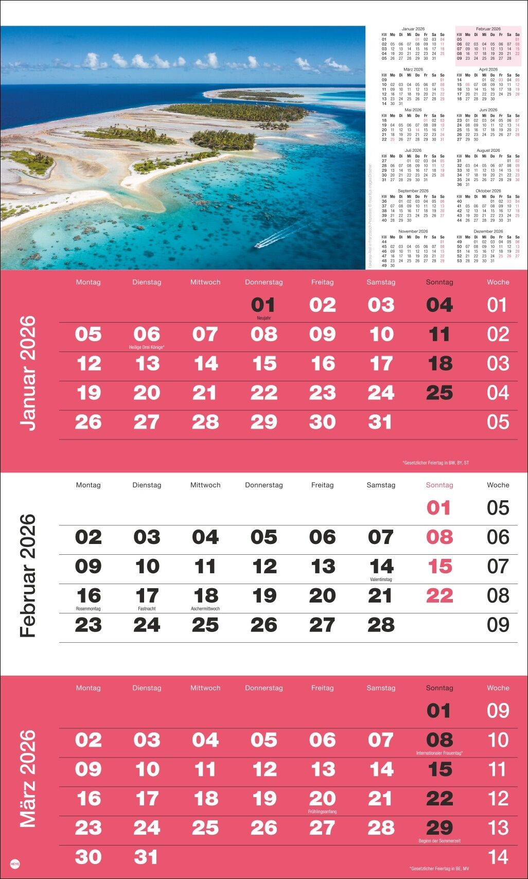 Ein farbenfroher Hingucker für Büro und Home-Office: praktischer 3-Monatsplaner mit Fotos - Zwischendurch reif für die Insel? Dieser Planer entführt zu den schönsten Traumzielen rund um den Globus - Überblick wird hier großgeschrieben: Dreimonatskalender mit...