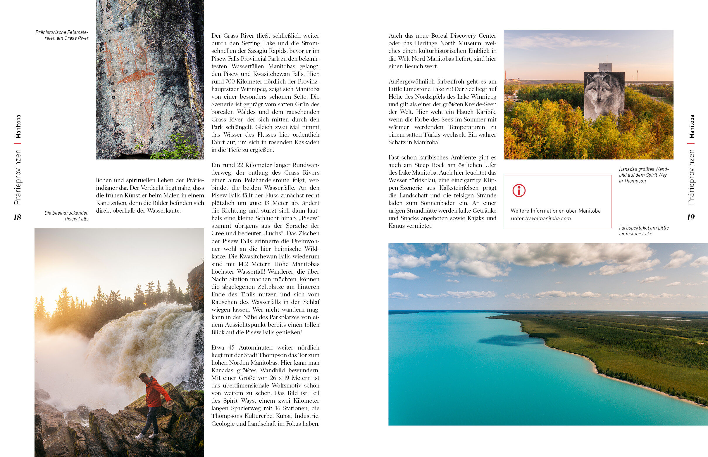 Mitten im Herzen Kanadas liegen die Prärieprovinzen Saskatchewan und Manitoba. Unzählige Seen und tosende Flüsse, riesige Waldflächen und farbenprächtige Hochebenen mit hügeligen Graslandschaften bieten beste Voraussetzungen und eine unbeschreibliche Kulisse f...
