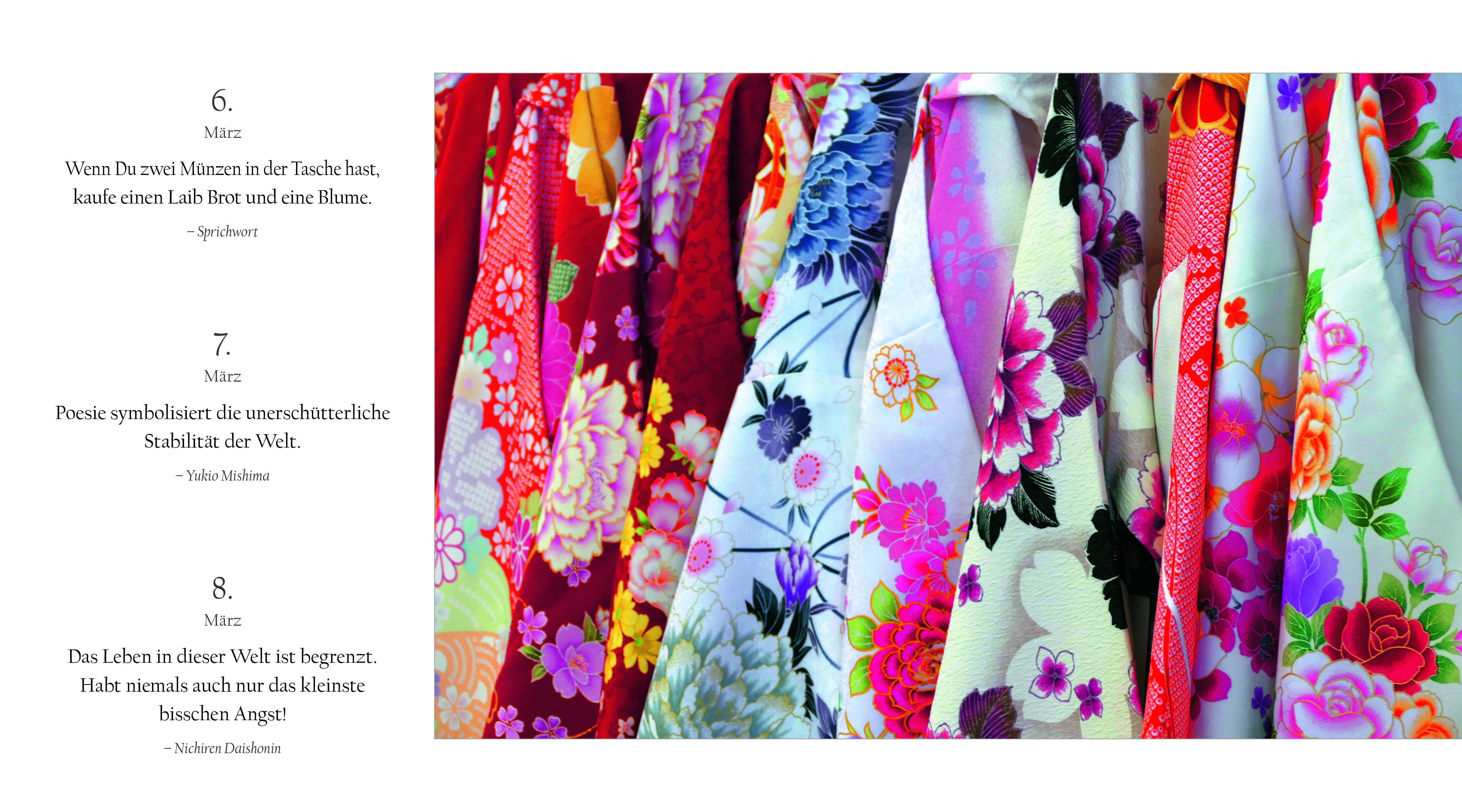 Sakura, die Zeit der zartrosa Zierkirschblüte. Festlich geschmückte Tempel. Kinder in Schuluniformen. Daibatsu, der große Buddha: In ganz besonderen Bildwelten erleben Sie in diesem Buchkalender den Geist und die elegante Ästhetik Japans. Von Januar bis Dezemb...