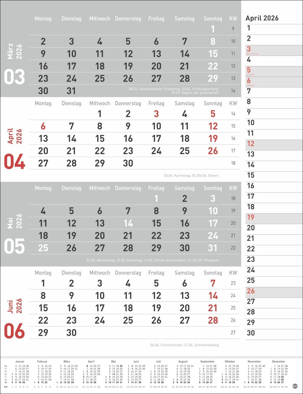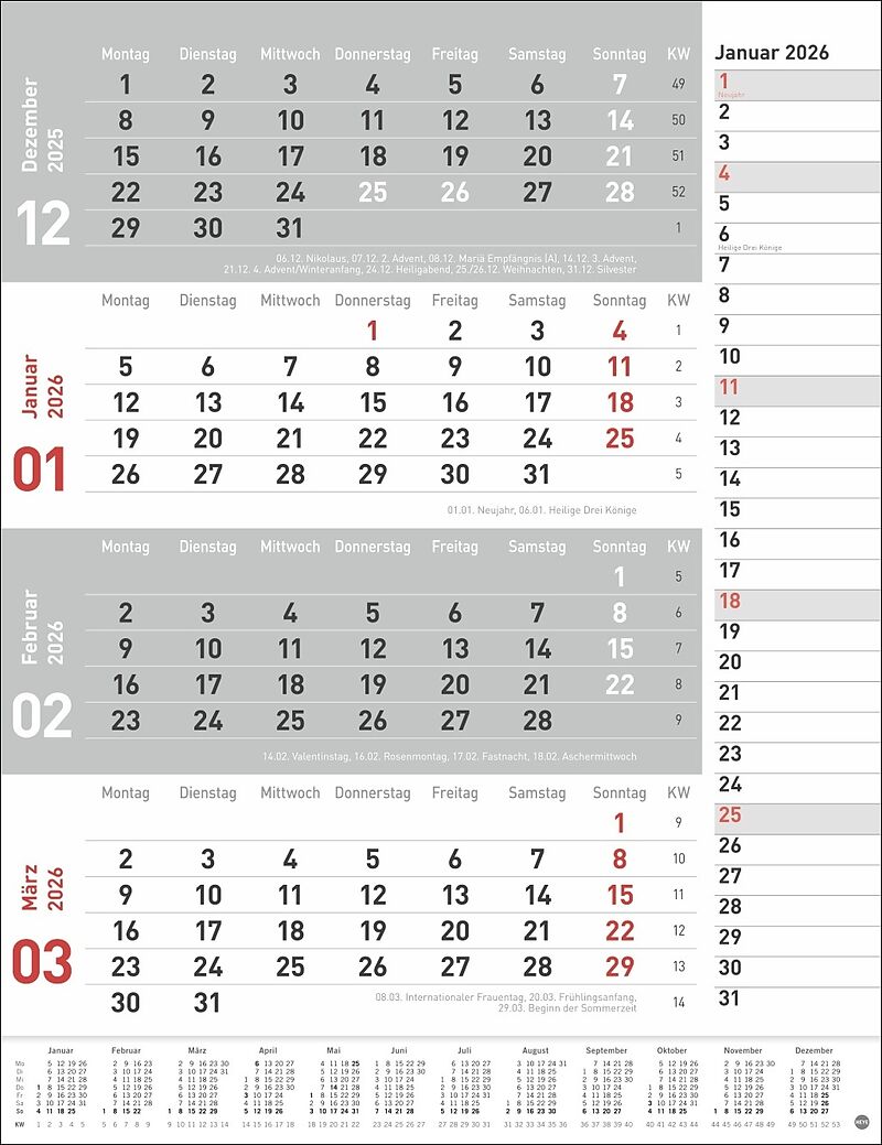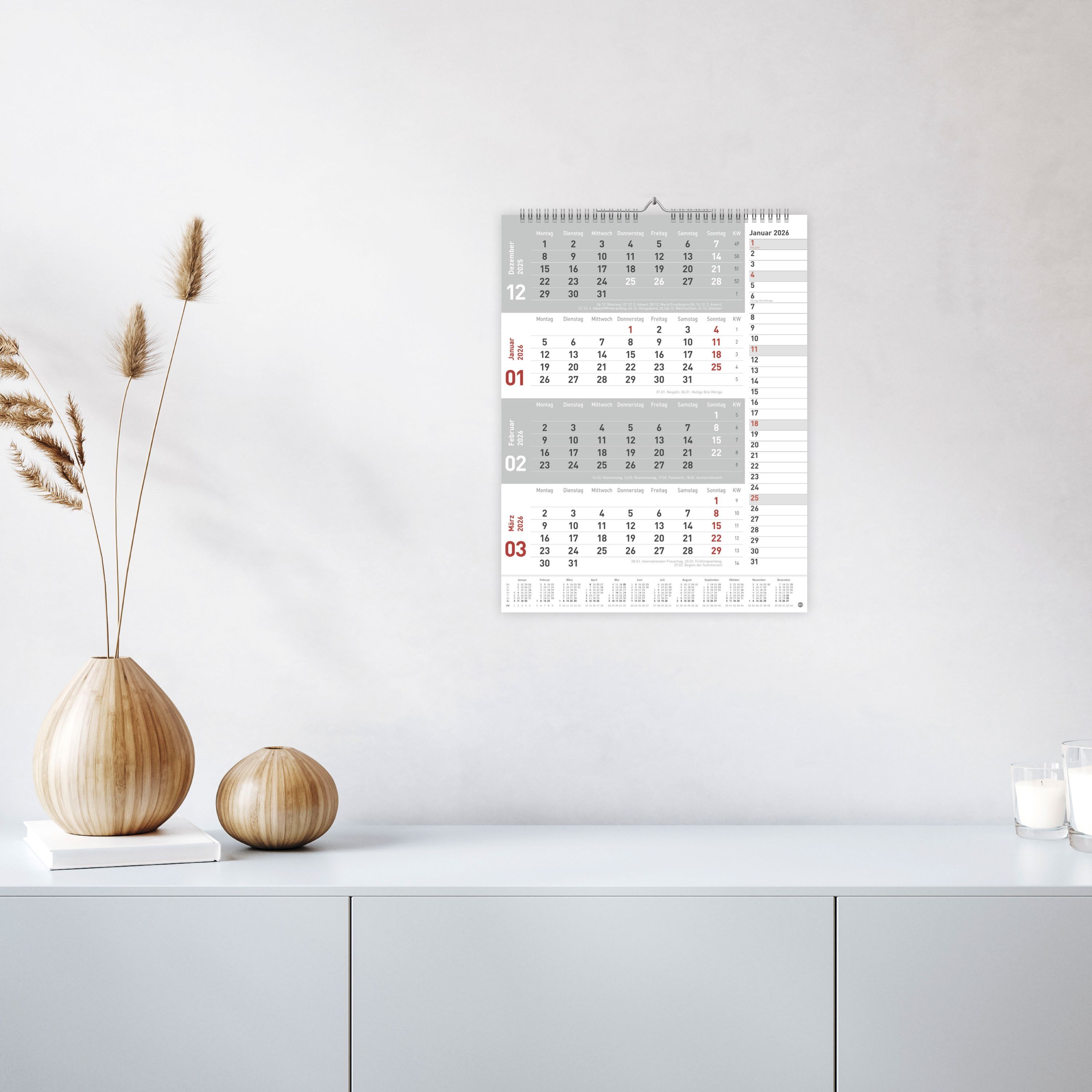 Neutral, praktisch, übersichtlich: 4-Monats-Terminkalender in schlichtem Design - Alle Deadlines, Meetings und andere Termine im Blick mit diesem Büro-Wandkalender 2026 im Hochformat 30 x 39 cm - Volle Konzentration auf das Wesentliche: 4-Monats-Kombiplaner ...