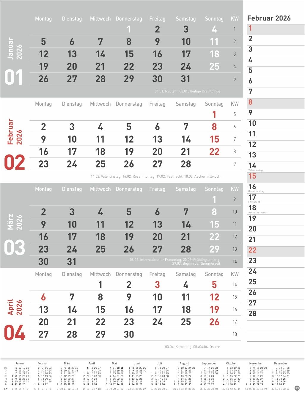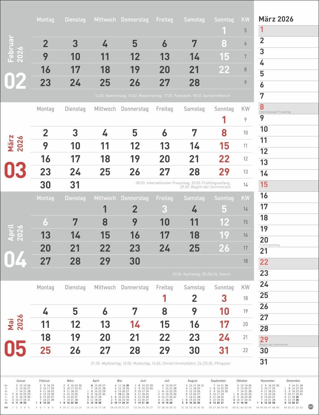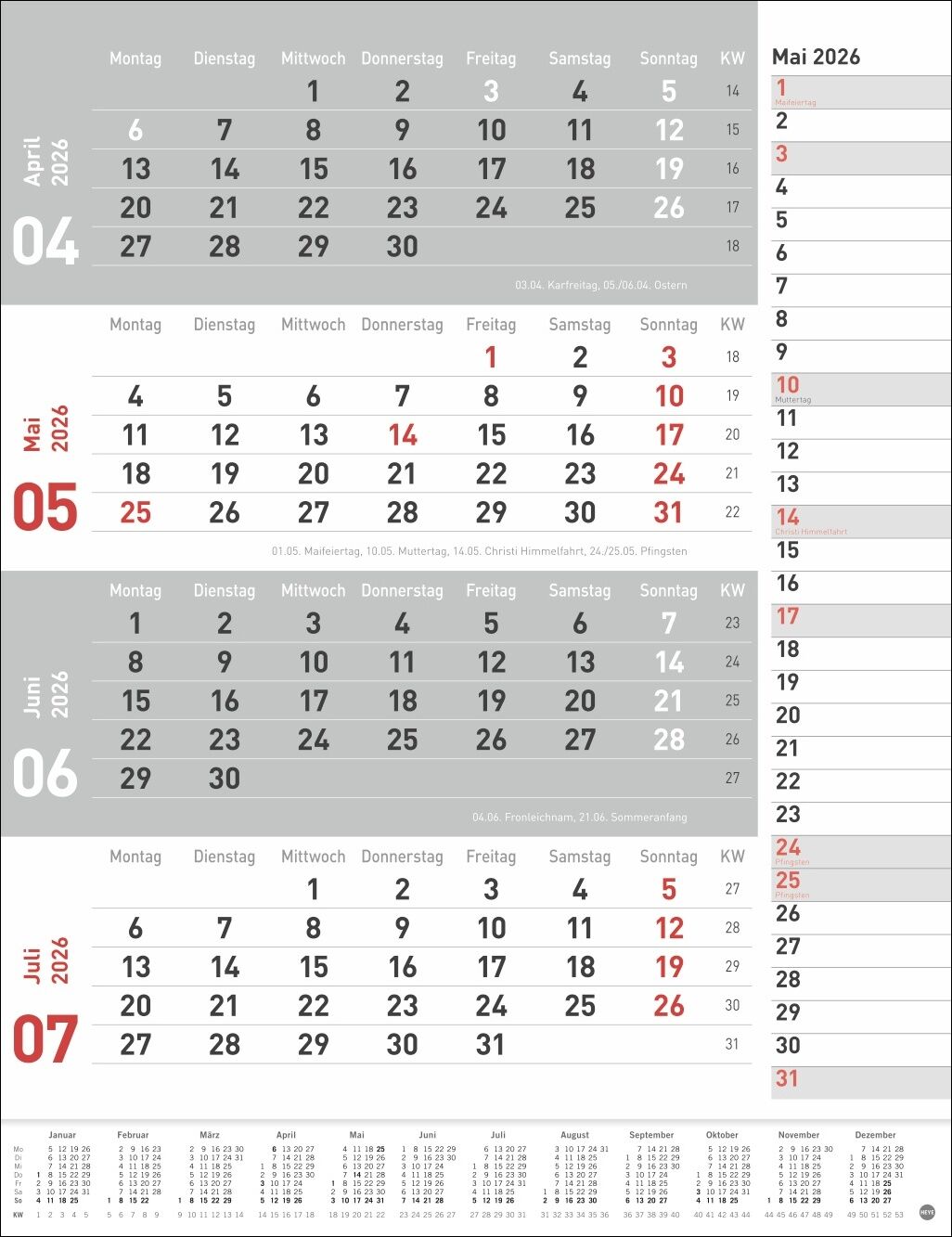 Neutral, praktisch, übersichtlich: 4-Monats-Terminkalender in schlichtem Design - Alle Deadlines, Meetings und andere Termine im Blick mit diesem Büro-Wandkalender 2026 im Hochformat 30 x 39 cm - Volle Konzentration auf das Wesentliche: 4-Monats-Kombiplaner ...