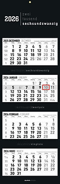 Der 4-Monatskalender Black 2026 von Alpha Edition bietet maximale Übersicht für langfristige Planung. Mit vier Monaten auf einen Blick, einem praktischen Datumsschieber und klar lesbaren Ziffern ist er der perfekte Organisationskalender für Büro, Hom...