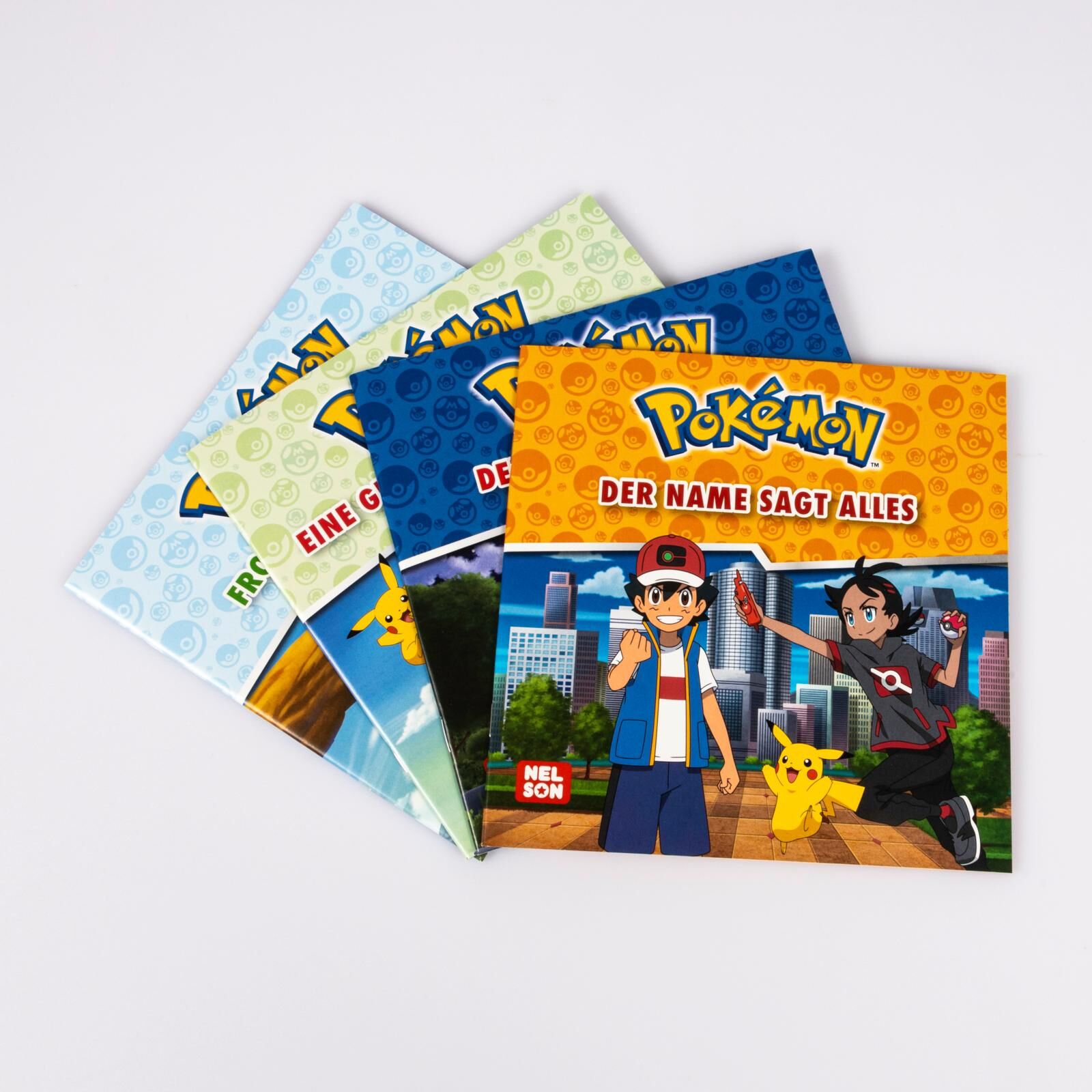 Pikachu auf neuen Abenteuern! Set mit 4 Pokémon-Abenteuern im Maxi-Mini-Format: Der Geister-Express, Der Name sagt alles, Eine Geschmacksexplosion, Frostiger Raid-Kampf Maxi-Mini-Set: Vier Bilderbuchgeschichten mit beliebten Figuren Praktisches Quadrat-Format...