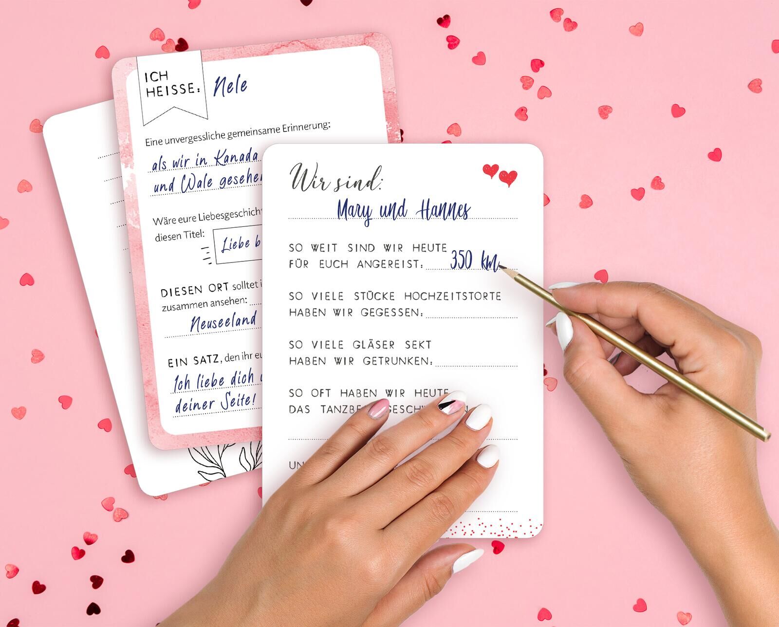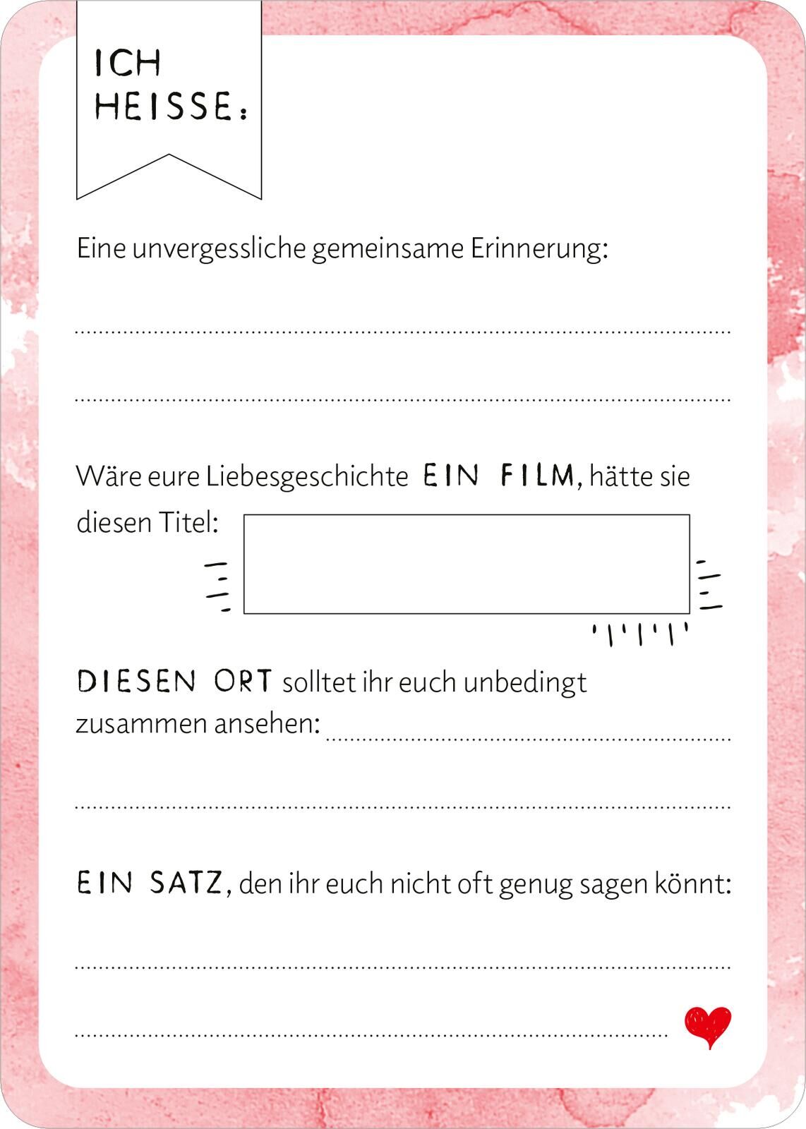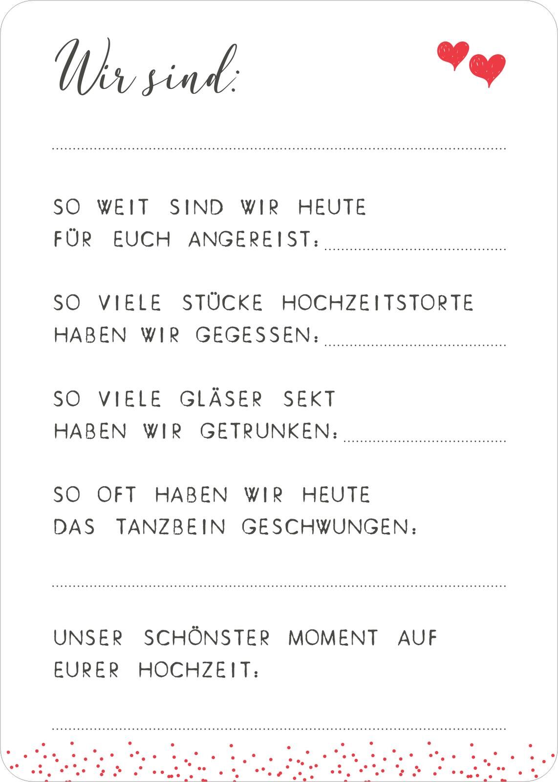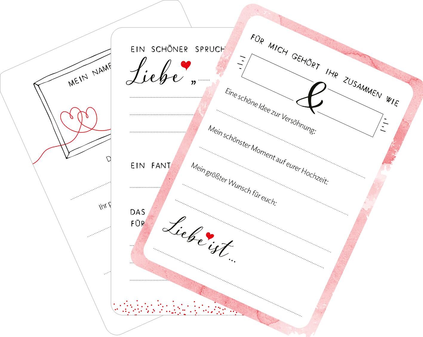 Statt Album: 50 Gästebuchkarten in der Box (Optik Herz) Ihr heiratet und sucht nach einem unkomplizierten Gästebuch, das euren Hochzeitsgästen Spaß macht? Ihr möchtet eine Alternative zum klassischen Hochzeitsalbum haben? Mit diesen 50 Gästebuchkarten in 5 De...