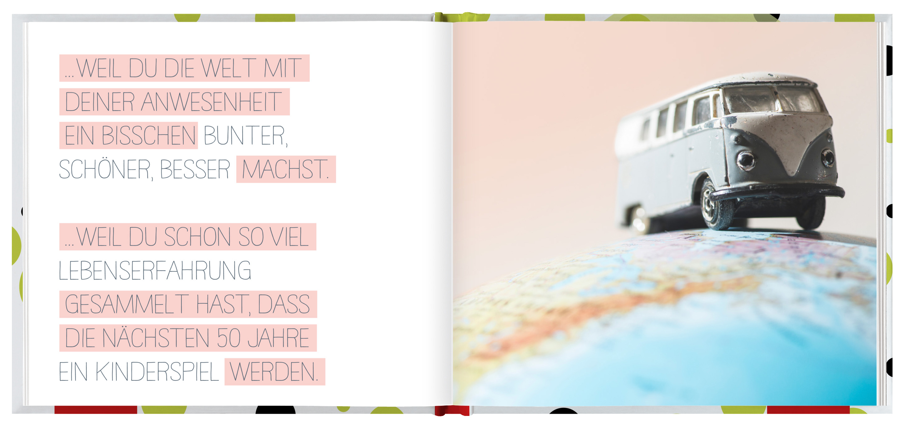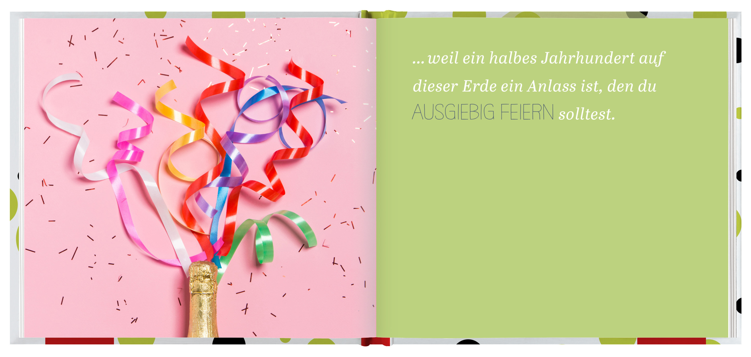 Ein schönes Buch zum wundervollen 50. Geburtstag Ein schönes Buch zum wundervollen 50. Geburtstag Der 50. Geburtstag stellt für die meisten Menschen ein Meilenstein dar. Oft wird eine Bilanz über das bisher Erreichte gezogen und man sieht sich in der Mitte sei...