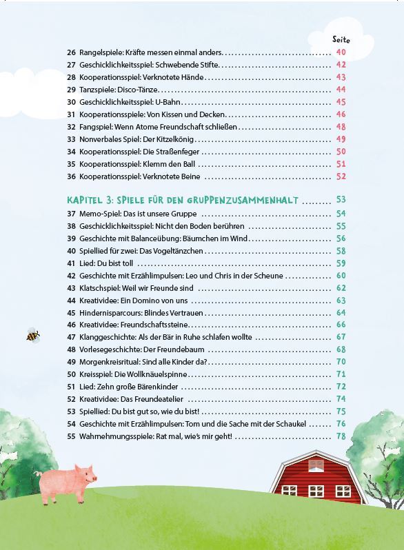 Wir sind Freunde! Ob Tauziehen oder zusammen einen Hügel erklimmen: Nichts verbindet Kinder so, wie gemeinsame Erlebnisse! Im Kita-Alltag findet sich die Gruppe im gemeinsamen Spiel immer wieder neu. Die 55 Gute-Laune-Spiele für alte und neue Freunde erleichte...
