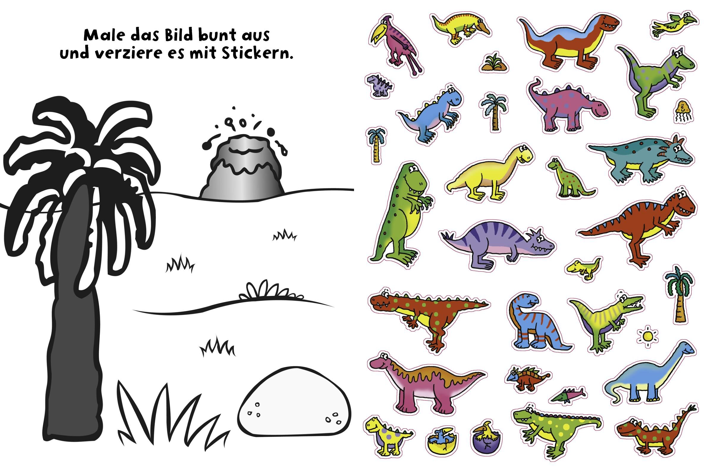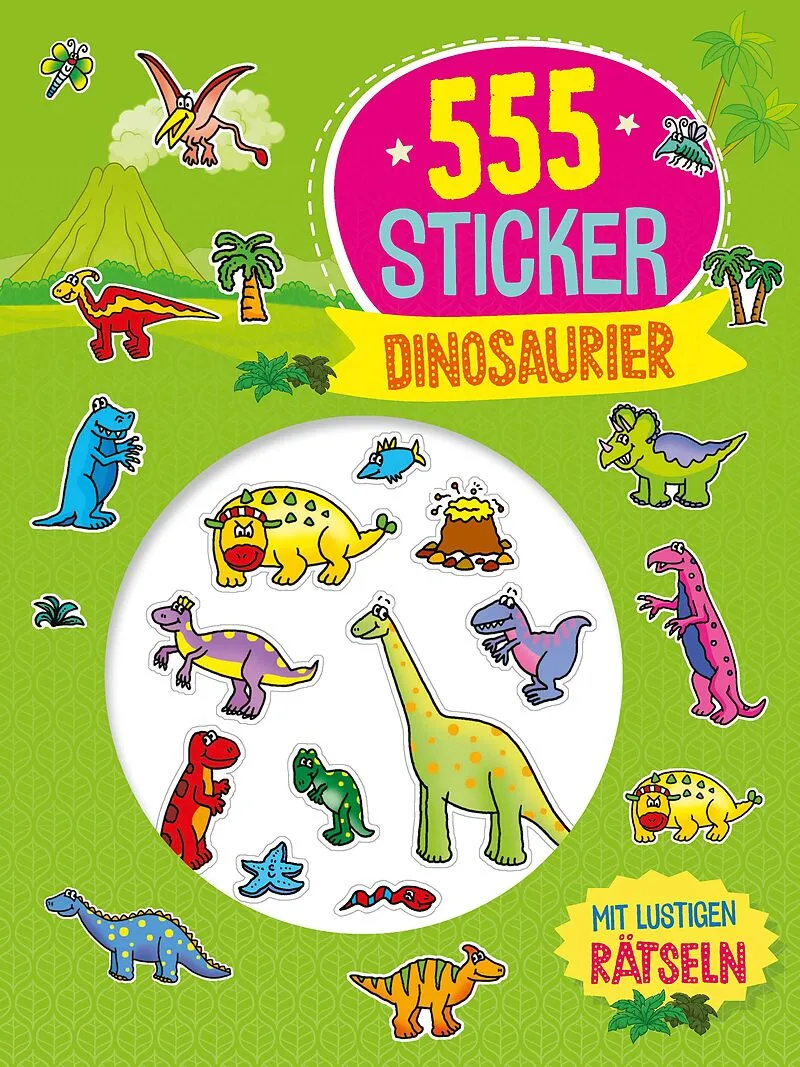 Toller Sticker-Spaß mit Dinosauriern • 555 tolle Sticker • Für alle Dino-Fans ab 4 Jahren • Mit lustigen Rätseln Riesendinos, Schreckensechsen und Flugsaurier: Klebe die 555 kunterbunten Sticker auf die Seiten, bastle ein Dino-Mobile und löse s...