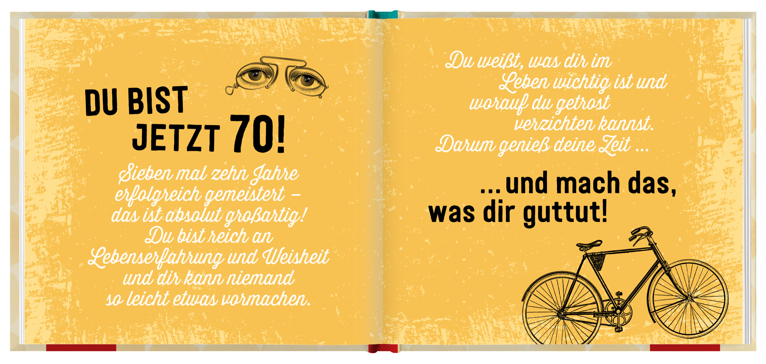 Ein humorvolles Glückwunsch-Buch zum 70. Geburtstag alles Gute zum runden Ehrentag! Jeder Geburtstag ist ein Grund zu feiern erst recht der 70. Geburtstag! Zeigen Sie dem Geburtstagskind mit diesem humorvollen kleinen Buch, wie unterhaltsam das Älterwerden se...