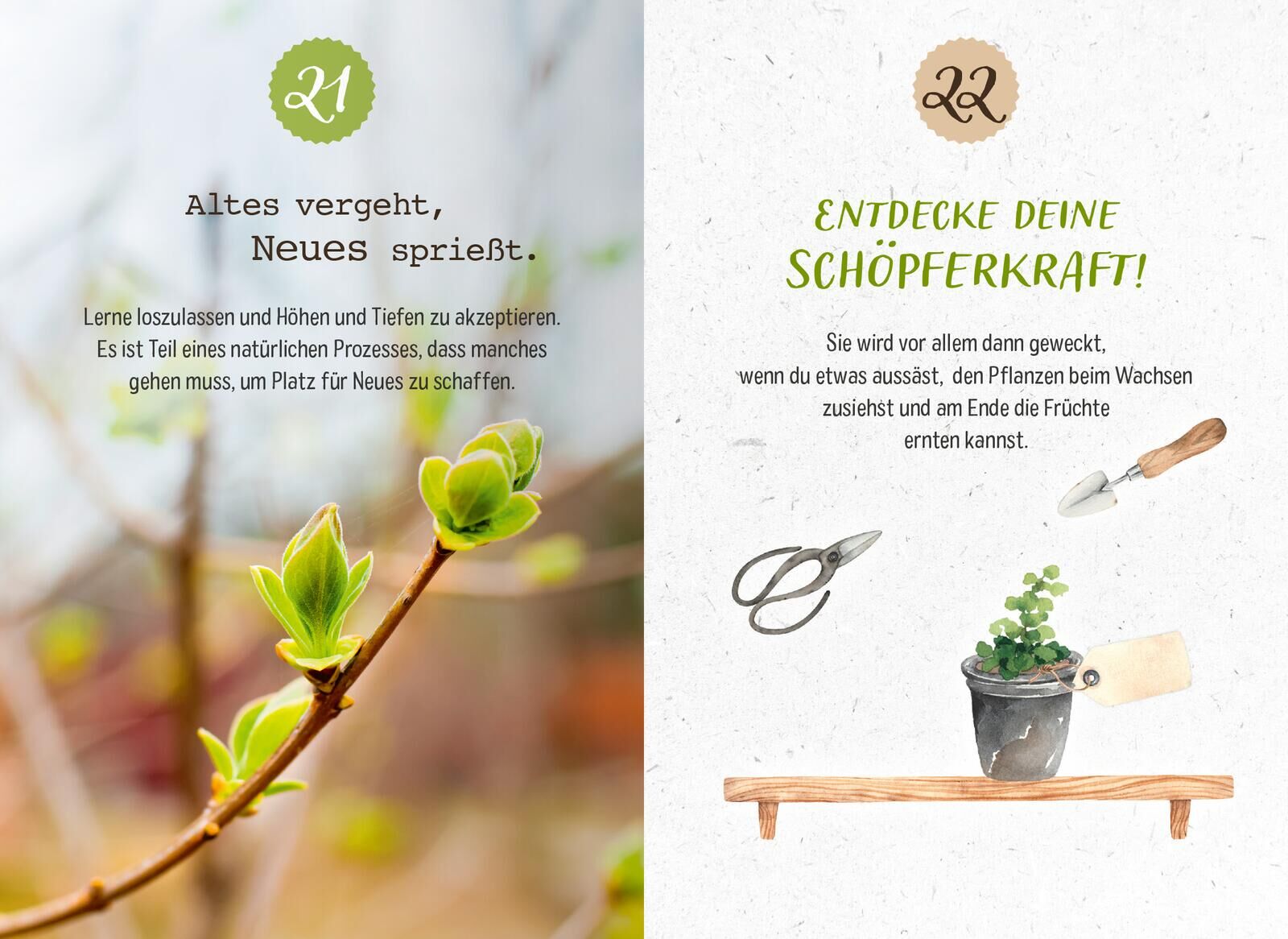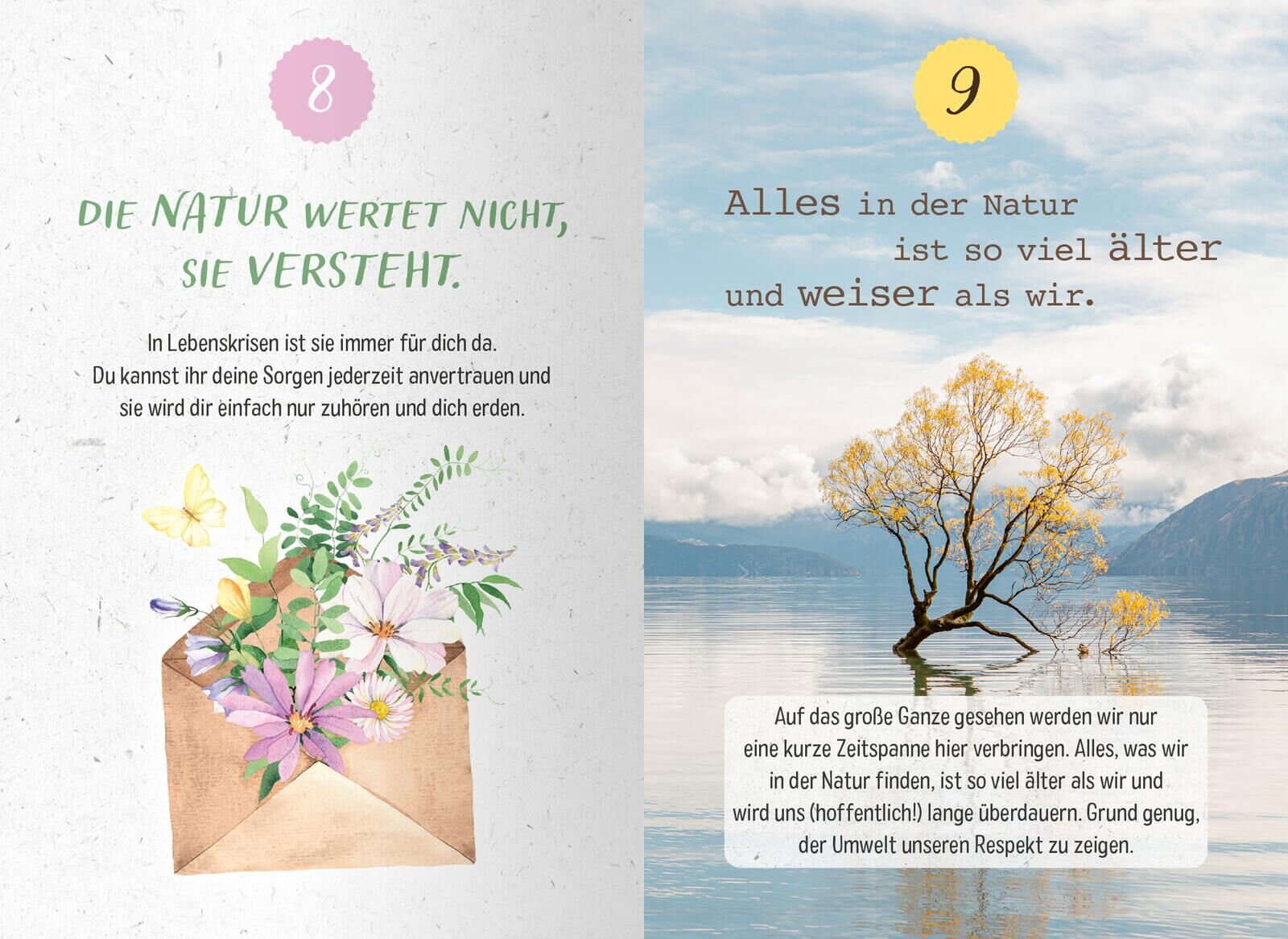 Achtsamkeit lernen aus der Natur Von der Natur können wir viel lernen: dass Veränderung schön und notwendig ist, dass nach Regentagen auch wieder die Sonne scheint und dass aus Altem immer wieder Neues entsteht. In diesem charmanten Buch findest du 99 wunderb...