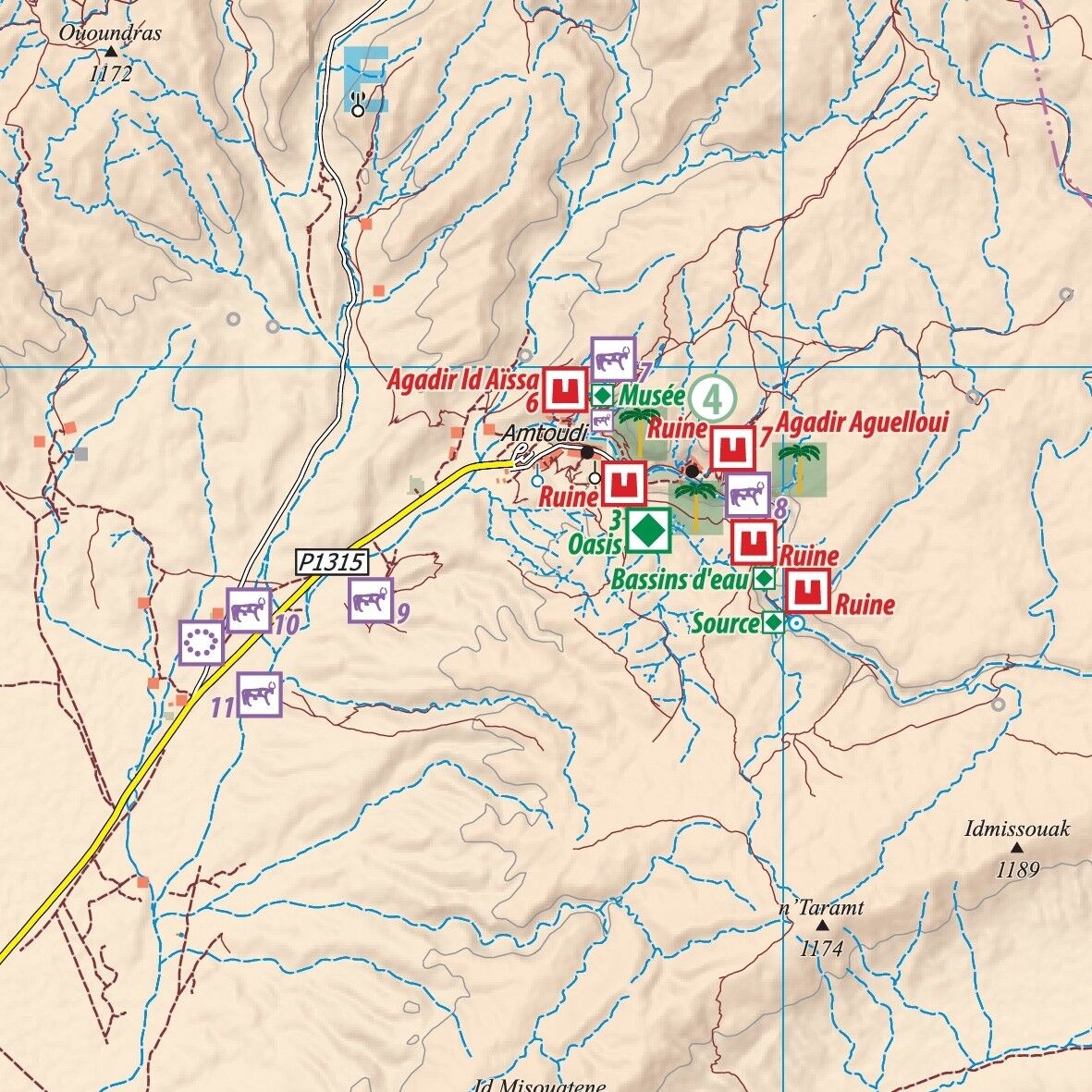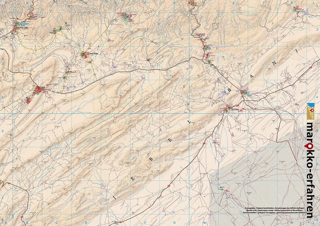 Carte touristique trilingue (de. / en. / fr.) extrêmement détaillée / guide de voyage de Maroc avec près de 100 destinations + beaucoup avec coordonnées+ informations de fond sur l'histoire, les possibilités de visite et autres particularités. - Culture archit...