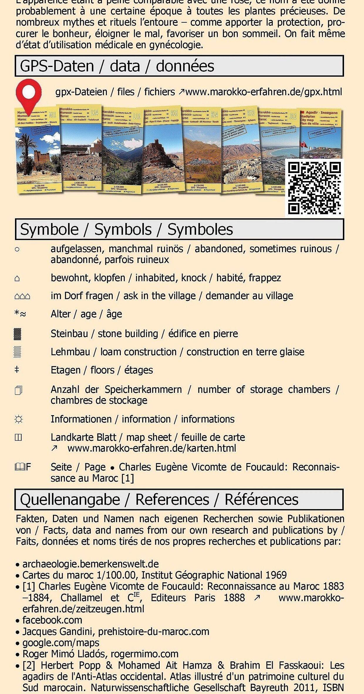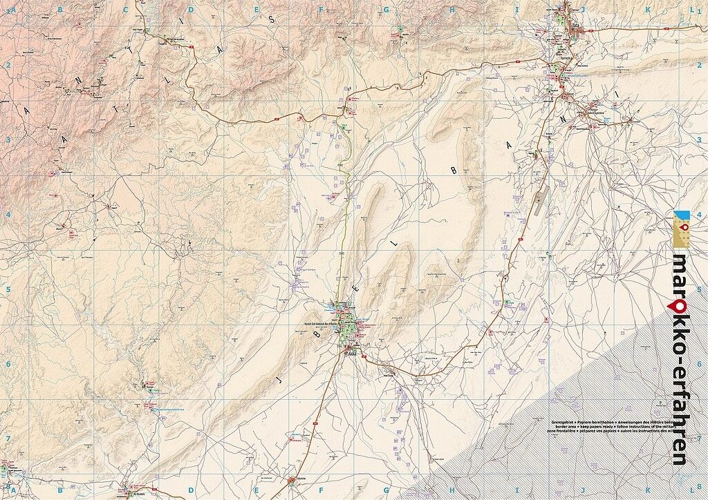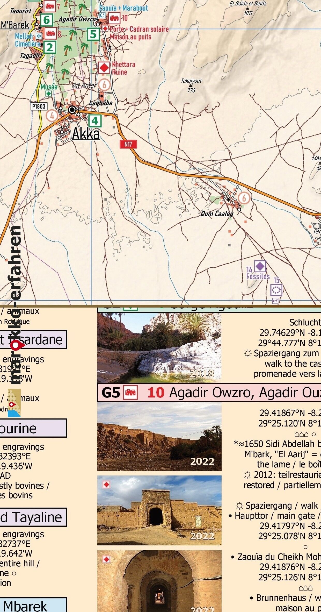 Dreisprachige (de. / en. / frz.) äußerst detaillierte touristische Landkarte / Reiseführer von Marokko mit über 160 Zielen + 88 davon mit Koordinatenangabe + Hintergrund-Informationen zur Geschichte, zu Besichtigungsmöglichkeiten und weiteren Besonderheiten &b...