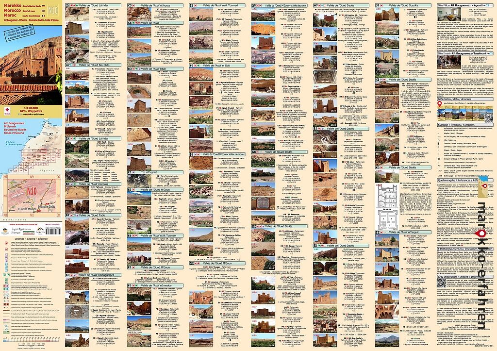 N10: Aït Bouguemez - M'Semrir - Boumalne Dadès - Kelâa M'Gouna + Straße der Kasbahs III + GPS-Waypoint Deutsch / Englisch / Französisch | 1:120.000 | ca. 84 x 59 cm | gefaltet 10,5 x 20 cm | zahlreiche Fotos | Dreisprachige (de. / en. / frz.) äußerst detaillie...