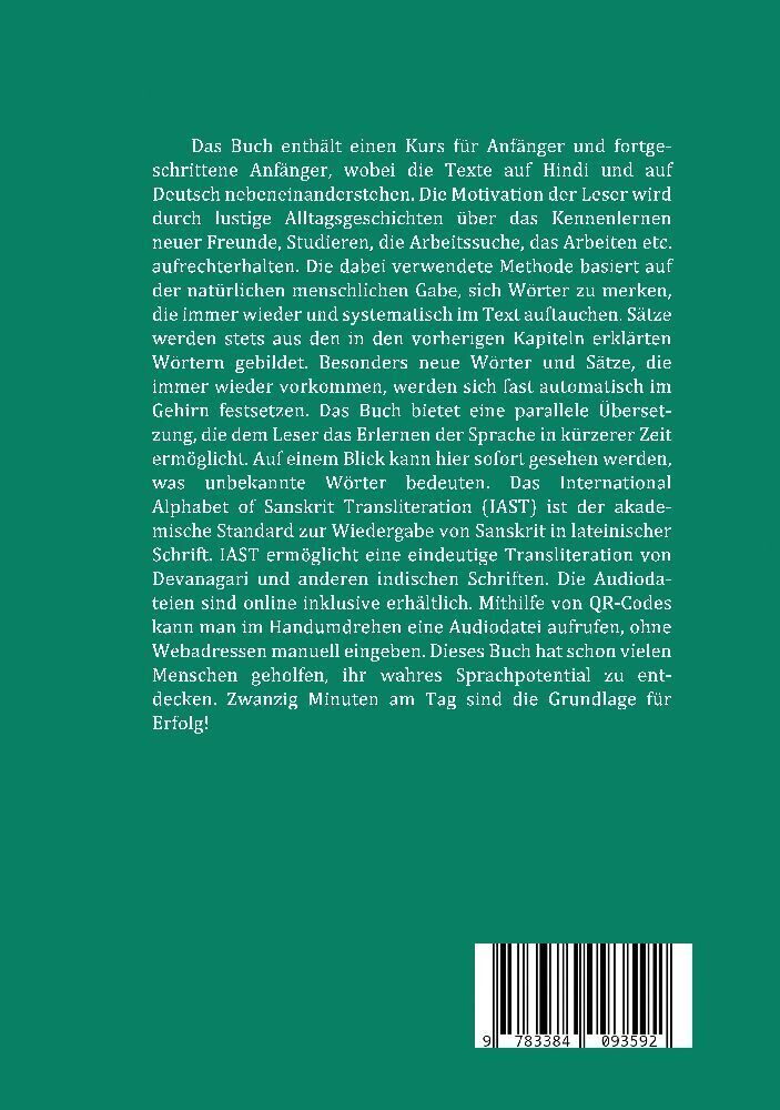 Das Buch enthält einen Kurs für Anfänger und fortgeschrittene Anfänger, wobei die Texte auf Hindi und auf Deutsch nebeneinanderstehen. Die Motivation der Leser wird durch lustige Alltagsgeschichten über das Kennenlernen neuer Freunde, Studieren, die Arbeitssuc...