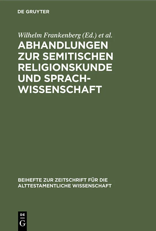 Keine ausführliche Beschreibung für "Abhandlungen zur semitischen Religionskunde und Sprachwissenschaft" verfügbar. Klappentext In der Reihe Beihefte zur Zeitschrift für die alttestamentliche Wissenschaft (BZAW) erscheinen Arbeiten zu sämtlichen Gebi...