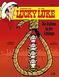 Zu 387 Jahren Haft verurteilt, fallen die Dalton Brüder einer neuen landesweiten Verordnung zum Opfer, die in den überfüllten Gefängnissen Platz schaffen soll: Sie werden gehängt. So hat es der neue Präsident beschlossen. Doch ihr Zellennachbar, der alles andere als ehrbare Richter Bigwanst, verweist die Daltons auf ein Gesetz vom 6. Juni 1858, das es ihnen ermöglichen könnte, doch noch dem Galgen zu entrinnen... Dazu müssen sie nur heiraten! Ma Dalton soll deshalb vier Frauen auftreiben, die mit ihren Söhnen den Bund der Ehe schließen wollen. Ein schier aussichtsloses Unterfangen! So bricht der Tag der Hinrichtung an und selbst Lucky Luke spürt, dass die vier Schurken das Ende der Piste erreicht haben. Im letzten Moment werfen jedoch die Frauen vom Stamm der Plattkopfindiander ein Auge auf die Brüder. Die turbulente Hochzeit mit den indianischen Bräuten bewahrt die Daltons zwar vor dem Galgen, ihr netter Schwiegerpapa hat aber nicht das Wohl seiner Töchter im Blick. Er zieht sich die vier Ganoven als Schwiegersöhne nur an Land, um den Bleichgesichtern ihren Gott zu stehlen: den DOLLAR. Während die Daltons den Indianern die Kunst kultivierter Banküberfälle näher bringen, erleben sie auch, dass der Unterschied zwischen der Schlinge und der Ehe gar nicht so groß ist... Zum Glück ist Lucky Luke da, um auf seine besten Feinde aufzupassen! Nach dem großen Erfolg von "Schikane in Quebec", der ersten Fortsetzung von Lucky Luke seit dem Tod seines Schöpfers Morris, melden sich Achdé und Gerra mit einem zweiten Band im Westernstil zurück. Obwohl die Daltons in dieser hochoriginellen Geschichte einmal völlig anders geschildert werden (die vier Gangster verheiratet, das muss man erst mal gesehen haben), steht "Die Daltons in der Schlinge" in der großen Tradition der Lucky Luke-Storys mit wilden Verfolgungsjagden, Faustkämpfen und Indianer-Folklore. Sehr unterhaltsam sind auch die Auftritte von Gaststars wie Joe Dassin, Liz Taylor, Kirk Douglas, John Wayne und Anspielungen auf Asterix. Laurent Gerra kennt seine Klassiker, und Achdés Zeichenstift steht ihm in nichts nach, sie treffen den Geist der Serie ganz im Sinne von Morris auf das Vortrefflichste.