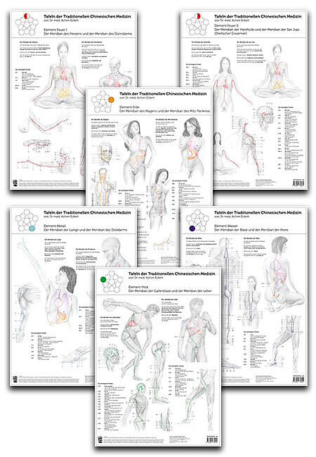 Die Meridianzeichnungen wurden auf diesen Tafeln nach dem Grundcharakter der Element-Typen gestaltet. Sie wurden hier für den Praktiker und Liebhaber zu sechs Wandtafeln zusammengestellt. Die Tafeln stellen den oberflächlichen und tiefen Verlauf der 12 Organme...