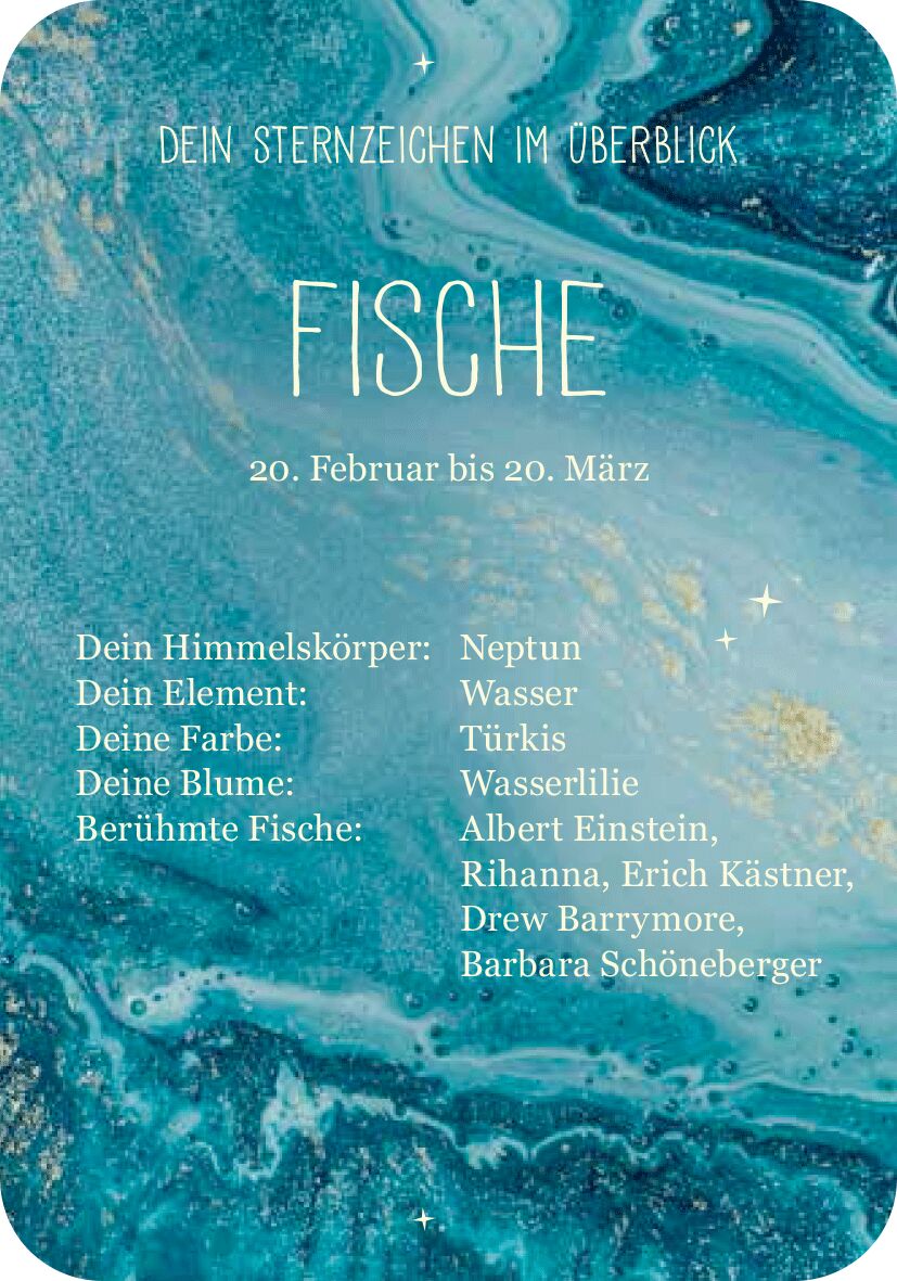 Was steht in deinen Sternen? Achtsamkeitstipps für das Sternzeichen Fische (19. Februar 20. März) Wassermänner gelten als unabhängig, Schützen als optimistisch und Stiere als verlässlich doch welche Einflüsse hat dein eigenes Sternzeichen auf dich? Und wie ka...