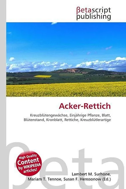 High Quality Content by WIKIPEDIA articles! Acker-Rettich (Raphanus raphanistrum), auch Hederich oder Wilder Rettich genannt, ist eine Pflanzen-Art aus der Familie der Kreuzblütengewächse (Brassicaceae). Trotz seines Namens bildet er keine verdickte Wurzel. Es...