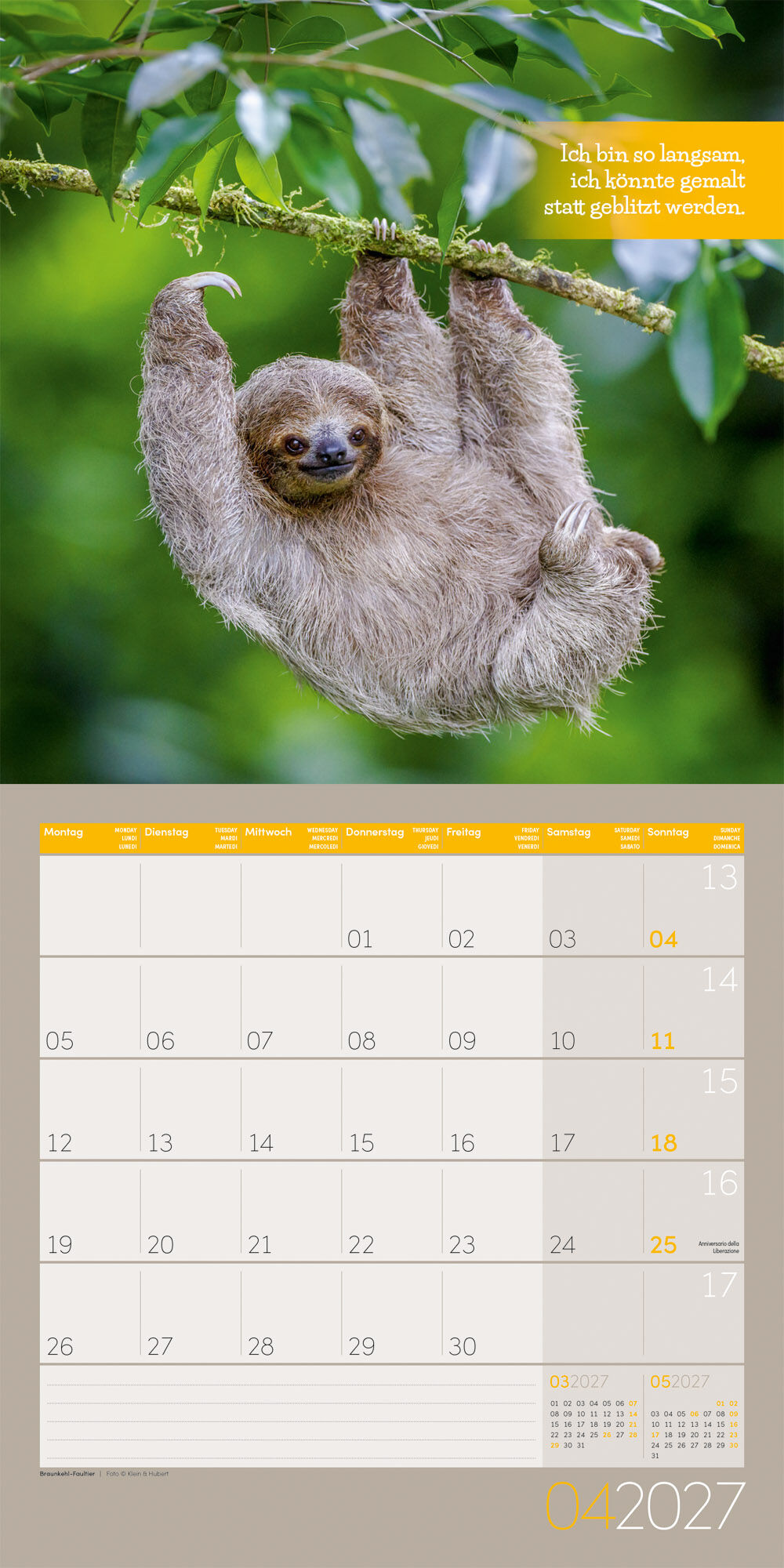 Tierisch lustige Bilder und humorvolle Sprüche: Lächeln Sie Monat für Monat dank dieser bunten Mischung aus ausdrucksvollen Tierbildern. Mit einem Lächeln auf den Lippen kommt man besser durchs Jahr - und die tierisch lustigen Bilder in diesem Kalender sorgen ...