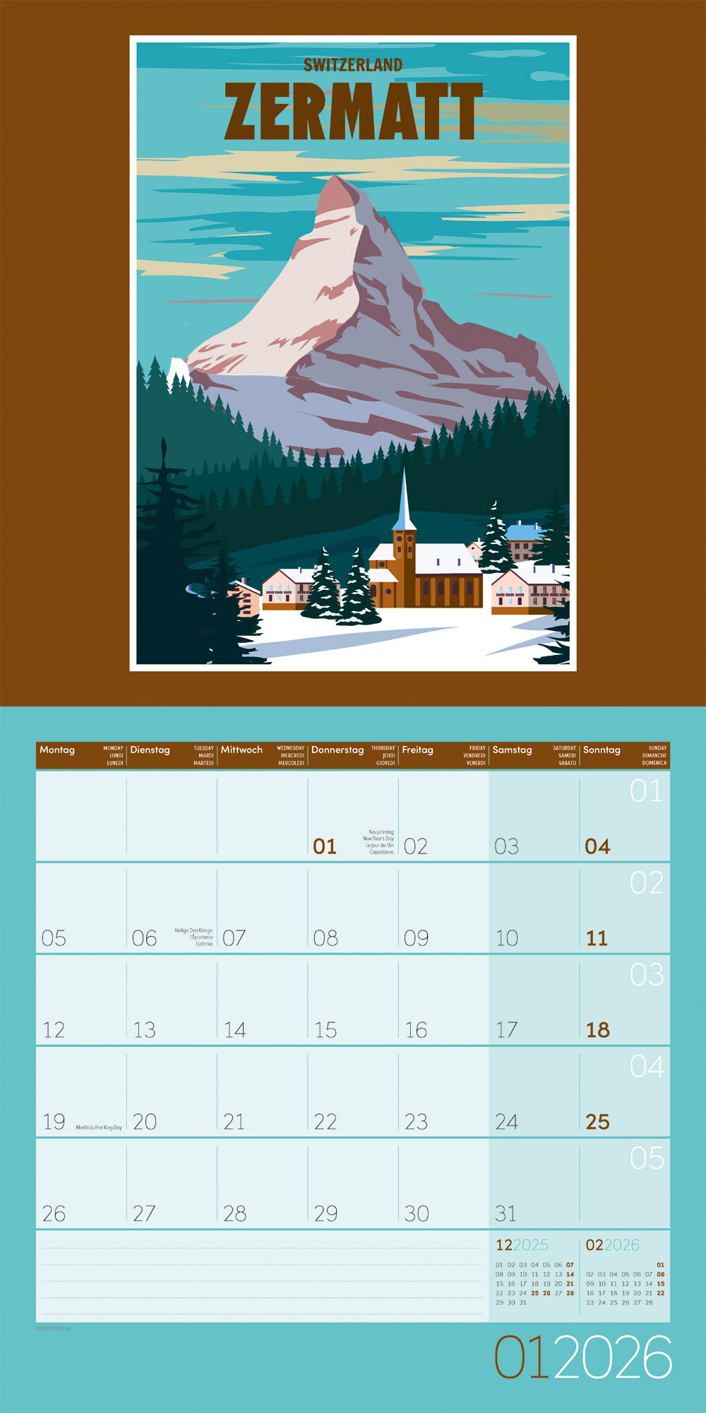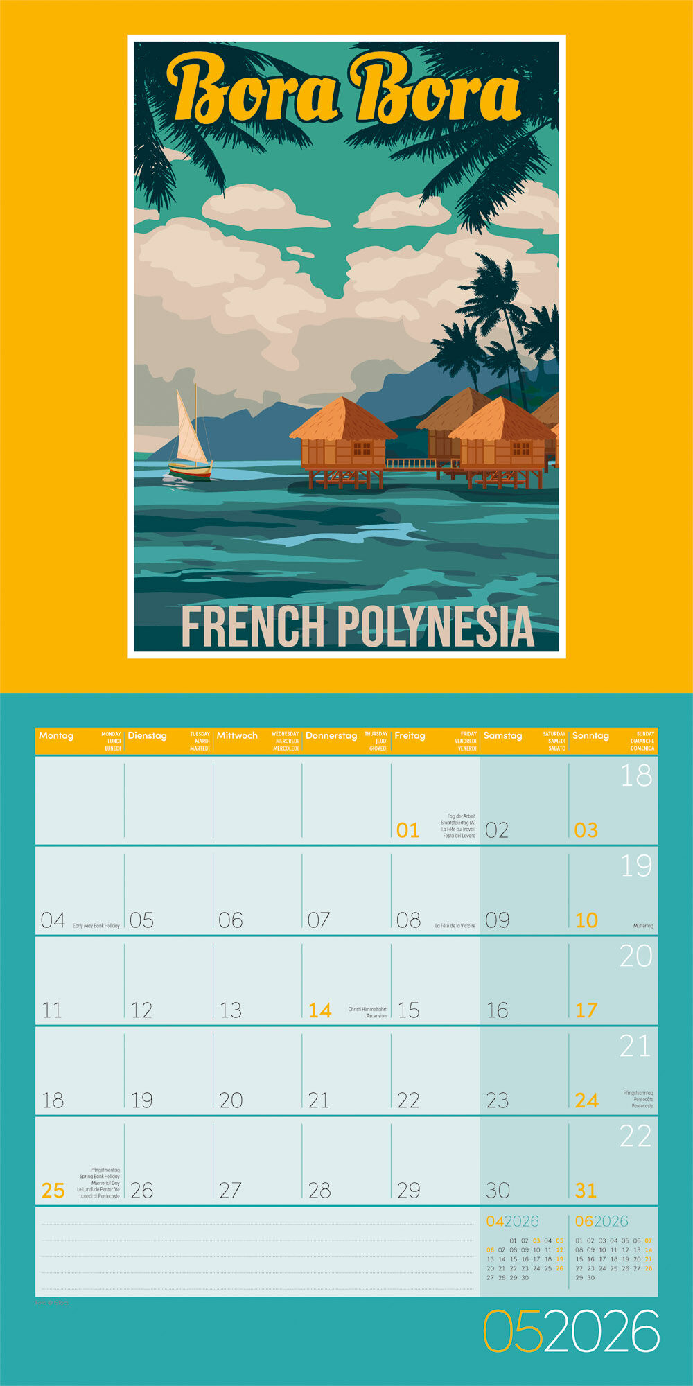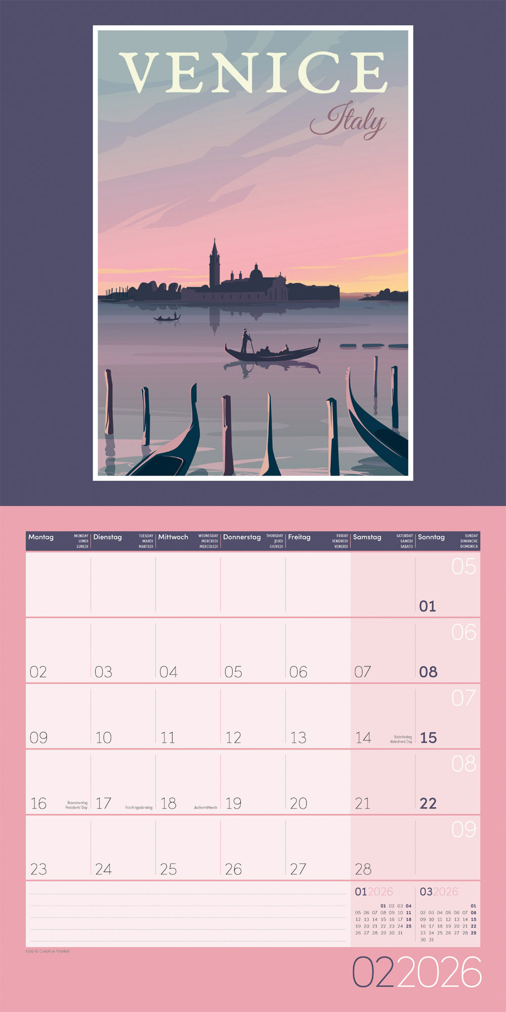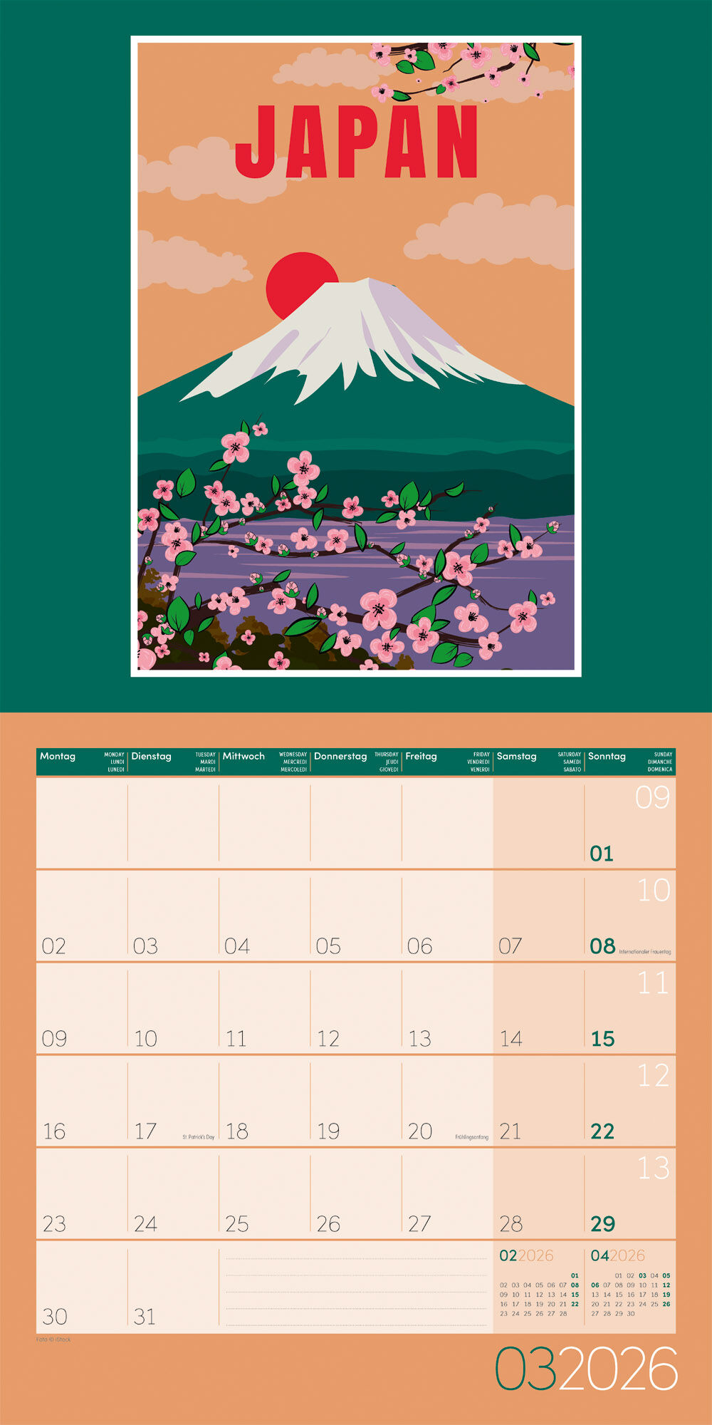 Retro-Reiseplakate: Träumen Sie sich mit bunten Motiven ein Jahr lang rund um den Globus und stillen Sie Ihr Fernweh mit nostalgischer Sehnsucht. Japan, Venedig, New York oder doch lieber Ägypten? Wohin geht die Reise im nächsten Monat? Träumen Sie sich mit to...