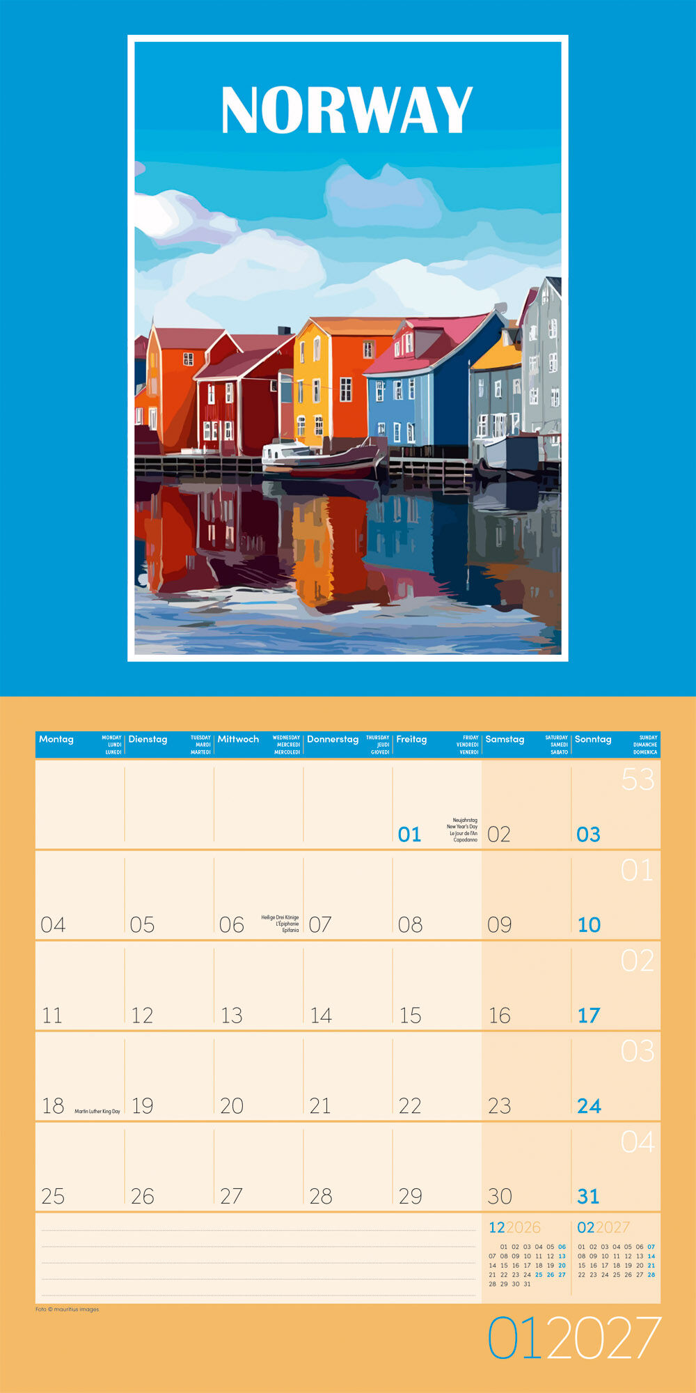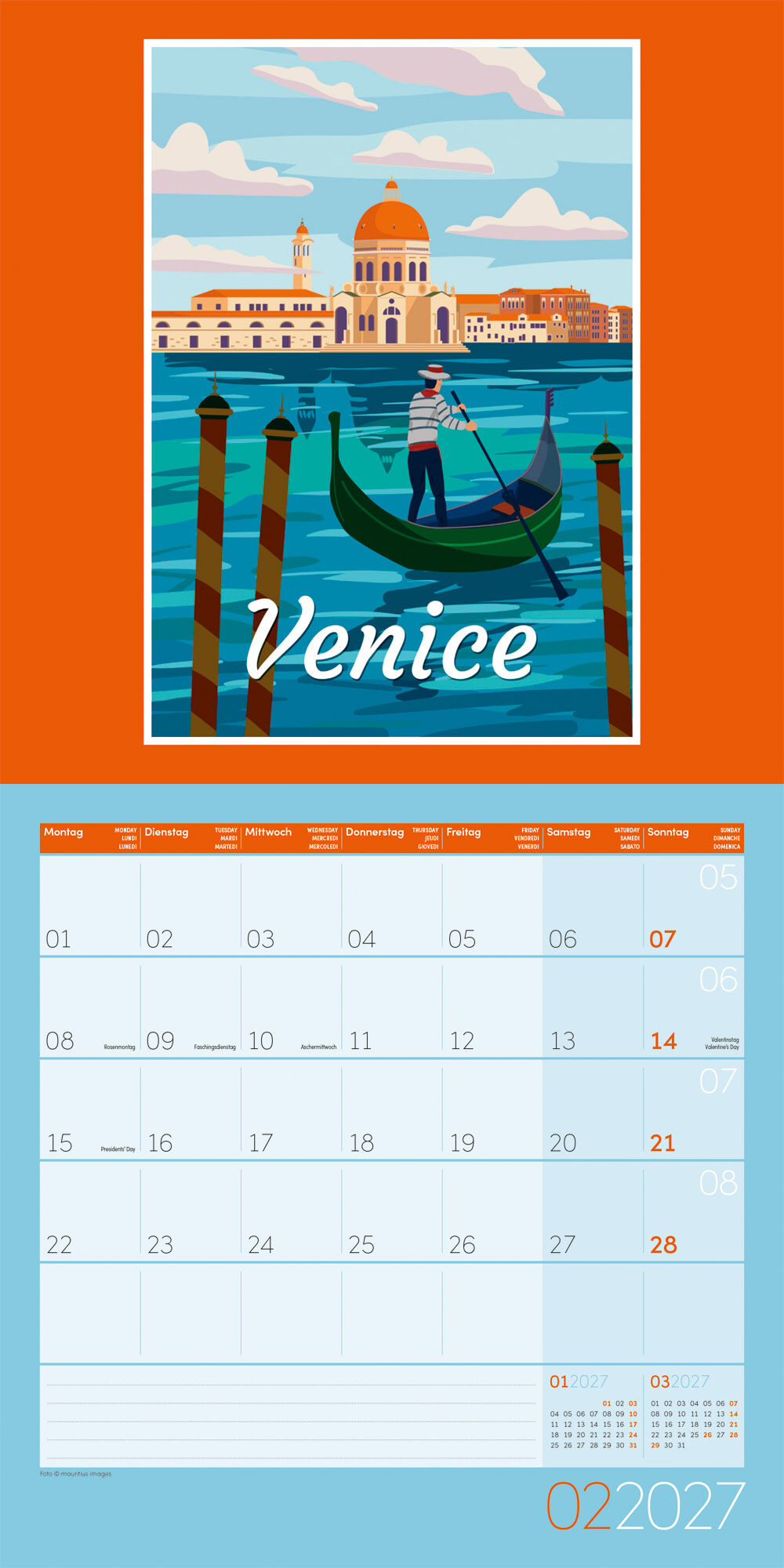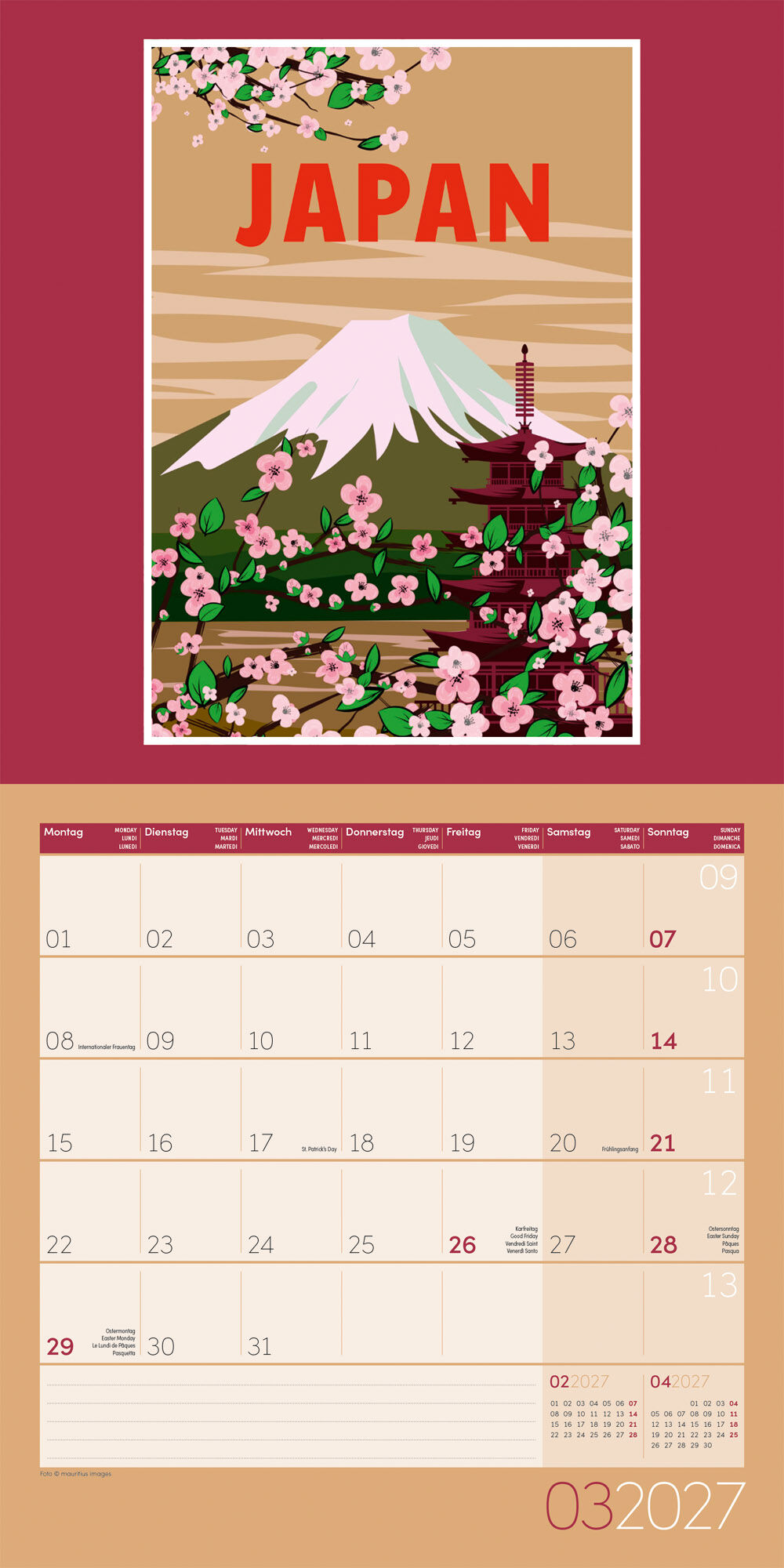 Retro-Reiseplakate: Träumen Sie sich mit bunten Motiven ein Jahr lang rund um den Globus und stillen Sie Ihr Fernweh mit nostalgischer Sehnsucht. Japan, Venedig, Miami oder doch lieber Marokko? Wohin geht die Reise im nächsten Monat? Träumen Sie sich mit tolle...