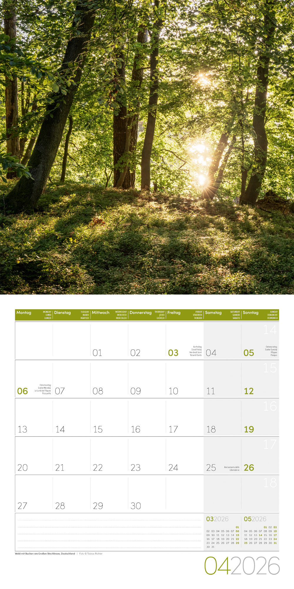 Entspannen Sie und genießen Sie die Natur mit 12 stimmungsvollen Waldmotiven - ein schneller Blick zur Wand genügt für einen kurzen Waldspaziergang. Wälder haben viele Gesichter: Mal sind sie dunkel und dramatisch, mal hell-blühend und voller Frühlingsgrün. Wa...