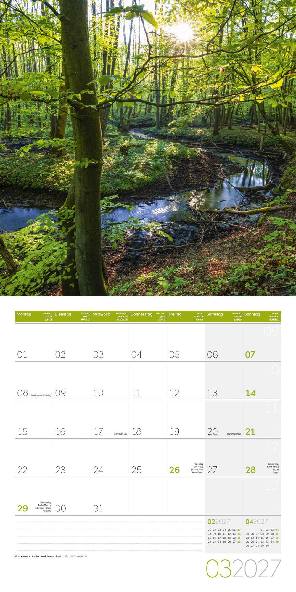 Entspannen Sie und genießen Sie die Natur mit 12 stimmungsvollen Waldmotiven - ein schneller Blick zur Wand genügt für einen kurzen Waldspaziergang. Wälder haben viele Gesichter: Mal sind sie dunkel und dramatisch, mal hell-blühend und voller Frühlingsgrün. Wa...