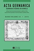 Der erste Teil «Afrika schreiben», zugleich Schwerpunktsetzung des Jahrbuchs, versammelt Beiträge über Afrikaverarbeitungen in der deutschen Literatur und im kulturellen Gedächtnis, die bezeugen, dass der afrikanische Kontinent nicht erst seit seiner Kolonisierung zu Imaginationen im europäischen Raum geführt, sondern auch heute noch Relevanz hat. Der zweite Teil «Sprache und Übersetzung» setzt sich mit Zusammenhängen von Sprache und Übersetzung sowie Fragen der Zugehörigkeit und Identität auseinander. Der dritte Teil enthält eine Reihe von allgemeinen Beiträgen zu literarischen Verarbeitungen des Ersten Weltkriegs, zu Aspekten kultureller und jüdischer Identität, aber auch zu Identitätskonstruktionen in neuerer deutscher Literatur und Gegenwartsliteratur, genauso wie zu Lesekonventionen und Gattungsfragen. Der dritte Teil schließt mit einem Beitrag zu Felicitas Hoppe ab. Zudem wird in einem Interview mit der Georg-Büchner-Preisträgerin von 2012, das im Anschluss zu lesen ist, ihr Südafrikabesuch im September 2014 gewürdigt. The first part, entitled «Writing Africa», is devoted to the focus of this journal. It comprises contributions which analyse the writing of Africa in German literary texts and in cultural memory thereby demonstrating that the African continent has not only been subject to the European imagination since it was colonised, but still holds relevance there today. In the second part of this volume, namely «Language and Translation», contributions investigate the connection between language and translation and between belonging and identity. The third part contains a number of general articles, ranging from analyses of literary texts which were written about the First World War to aspects of cultural and Jewish identity as manifested in literary texts, from (de)constructions of identity in 20th century and contemporary German literature to examining conventions of reading and questions of genre. The third part concludes with an article on Felicitas Hoppe, winner of the Georg-Büchner-prize in 2012, followed by an interview with the author who visited South Africa in September 2014.
