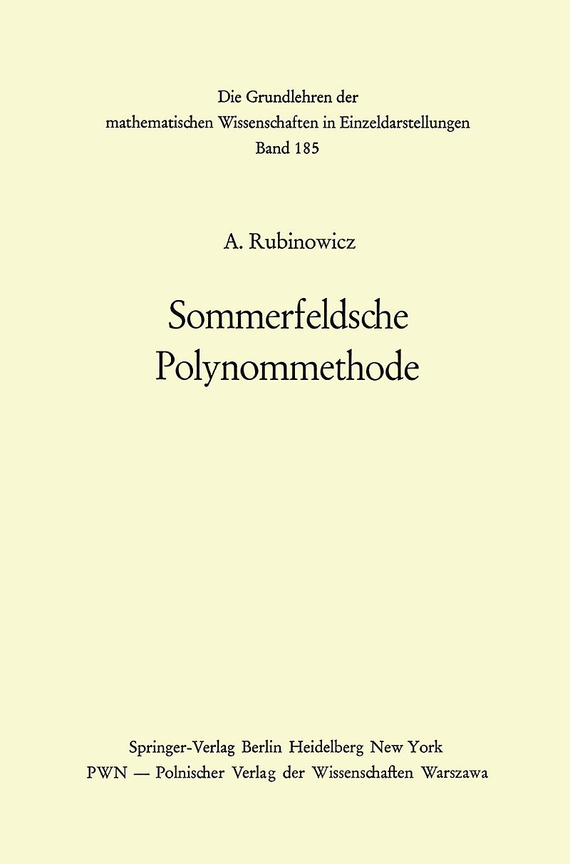 Kap. 1: Sommerfeldsche Polynommethode in ursprünglicher Fassung.- § 1. Der Sommerfeldsche Ansatz.- § 2. Bestimmung der Funktion E(x) und Definition der Invarianten S(x).- § 3. Ermittlung der Funktion W(x).- § 4. Bedingungen, die die Lösungen von Eigenwertproblemen der Quantentheorie zu erfüllen haben.- Kap. 2: Auflösung von Eigenwertproblemen mit Hilfe der gewöhnlichen Riemannschen P-Funktionen.- § 1. Eigenfunktionen mit gewöhnlichen Riemannschen P-Funktionen.- § 2. Zwei Beispiele: Eigenwertproblem der zugeordneten Kugelfunktionen und das des symmetrischen Kreisels.- § 3. Verwendung von Riemannschen P-Funktionen mit singulären Stellen in beliebigen Punkten.- § 4. Nochmals Eigenwertproblem der zugeordneten Kugelfunktionen als Beispiel.- § 5. Eigenwertproblem der verallgemeinerten zugeordneten Kugelfunktionen als Beispiel.- § 6. Kepler-Problem in der Hypersphäre als Beispiel.- Kap. 3: Auflösung von Eigenwertproblemen mit Hilfe konfluenter Riemannscher P-Funktionen.- § 1. Konfluente hypergeometrische Funktionen.- § 2. Lösung von Eigenwertproblemen mit Hilfe konfluenter P-Funktionen mit einer wesentlich singulären Stelle im Unendlichen. Funktionsklasse BI.- § 3. Zwei Beispiele: Eigenwertproblem des linearen, harmonischen Oszillators und der Radialfunktion eines Ein-Elektronen-Atoms.- § 4. Lösung von Eigenwertproblemen mit Hilfe konfluenter P-Funktionen mit einer wesentlich singulären Stelle im Unendlichen. Funktionsklasse BII.- § 5. Zwei Beispiele: Eigenwertproblem der Besselschen Funktionen und eine Beziehung zwischen zwei konfluenten hypergeometrischen Funktionen.- § 6. Lösung von Eigenwertproblemen mit Hilfe konfluenter P-Funktionen mit wesentlich singulären Stellen im Endlichen. Funktionsklasse CI.- § 7. Lösung von Eigenwertproblemen mitHilfe konfluenter P-Funktionen mit wesentlich singulären Stellen im Endlichen. Funktionsklasse CII.- Kap. 4: Formelsammlung und verschiedene Anwendungen.- § 1. Formelsammlung zur Sommerfeldschen Polynommethode.- § 2. Ermittlung von Potentialen, die mit Hilfe der Sommerfeldschen Polynommethode lösbare Eigenwertprobleme ergeben.- § 3. Umordnung von Eigenwertproblemen.- § 4. Zweiparametrige Eigenwertprobleme.- Kap. 5: Beziehungen zwischen der Faktorisierungs- und der Polynommethode.- § 1. Die Grundidee der Faktorisierungsmethode.- § 2. Paare von Rekursionsformeln für beliebige Eigenfunktionen eines gegebenen Satzes von Eigenwertproblemen.- § 3. Paare von Rekursionsformeln für die hypergeometrischen Funktionen.- § 4. Ableitung von Rekursionsformeln für Lösungen von Eigenwertproblemen, die sich mit Hilfe der Polynommethode herstellen lassen.- § 5. Faktorisierung des Eigenwertproblems der zugeordneten Kugelfunktionen als Beispiel.- § 6. Mit Hilfe der Polynommethode lösbare und zugleich auch faktorisierbare Eigenwertprobleme. Eigenlösungen mit gewöhnlichen hypergeometrischen Funktionen 2F1(a, b; c; ?).- § 7. Mit Hilfe der Polynommethode lösbare und zugleich auch faktorisierbare Eigenwertprobleme. Eigenlösungen mit konfluenten hypergeometrischen Funktionen 1F1(a; c; ?).- § 8. Typen von faktorisierbaren Eigenwertproblemen.- § 9. Faktorisierungsmethode und umgeordnete Eigenwertprobleme.- § 10. Zusammenhang zwischen der Faktorisierungsmethode und den Lie Algebren.- § 11. Vergleich der Faktorisierungs- und der Polynommethode.- Anhang B: Versuch einer Vereinfachung der Polynommethode.- Anhang C: Mit Hilfe der Polynommethode lösbare, jedoch nicht faktorisierbare Eigenwertprobleme.- Anhang F: Integration der Riccatischen Differentialgleichungen (5,6.11)und (5,6.35).- Namen- und Sachverzeichnis.