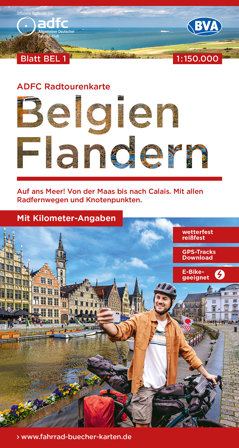 ADFC-Radtourenkarte BEL 1 Belgien Flandern 1:150.000, reiß- und wetterfest, E-Bike geeignet, GPS-Tracks Download, mit Kilometer-Angaben