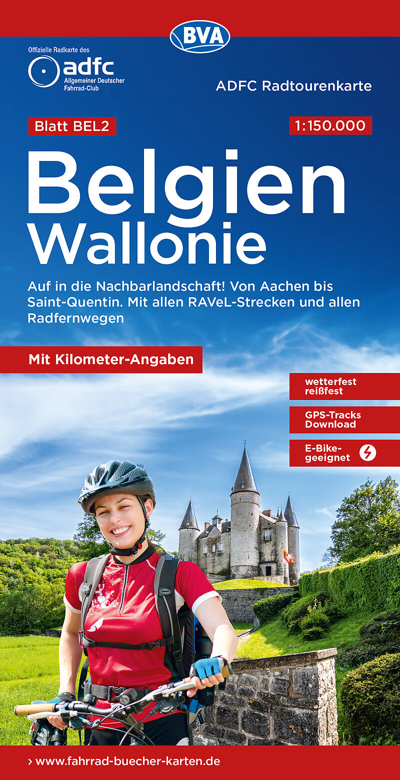 ADFC-Radtourenkarte BEL 2 Belgien Wallonie 1:150.000, reiß- und wetterfest, E-Bike geeignet, GPS-Tracks Download, mit Kilometer-Angaben