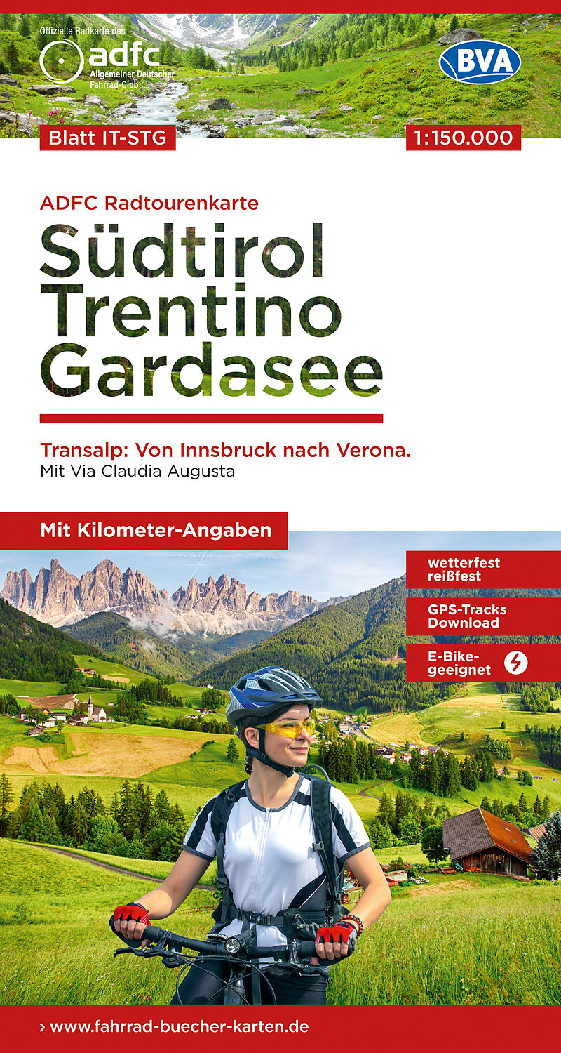ADFC-Radtourenkarte IT-STG Südtirol, Trentino, Gardasee 1:150.000, reiß- und wetterfest, E-Bike geeignet, GPS-Tracks Download, mit Bett+Bike Symbolen, mit Kilometer-Angaben
