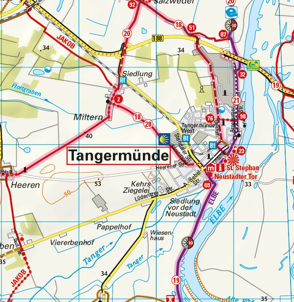 Offizielle Karte des ADFC Allgemeiner Deutscher Fahrrad-Club e.V. die ideale Karte für Planung und Durchführung von Tages- und Wochenendradtouren. Auf einem großen Gebiet von bis zu 70 x 100 Kilometern findet sich alles, was Radler brauchen. Routen, Tagestoure...