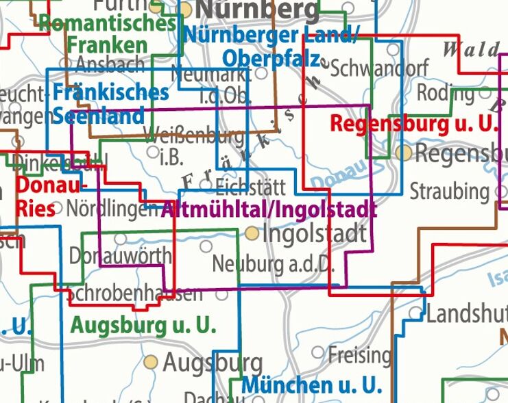 Offizielle Karte des ADFC Allgemeiner Deutscher Fahrrad-Club e.V. die ideale Karte für Planung und Durchführung von Tages- und Wochenendradtouren. Auf einem großen Gebiet von bis zu 70 x 100 Kilometern findet sich alles, was Radler brauchen. Routen, Tagestoure...