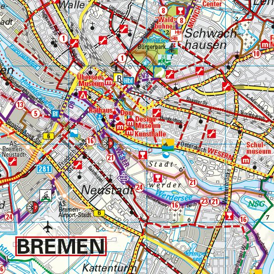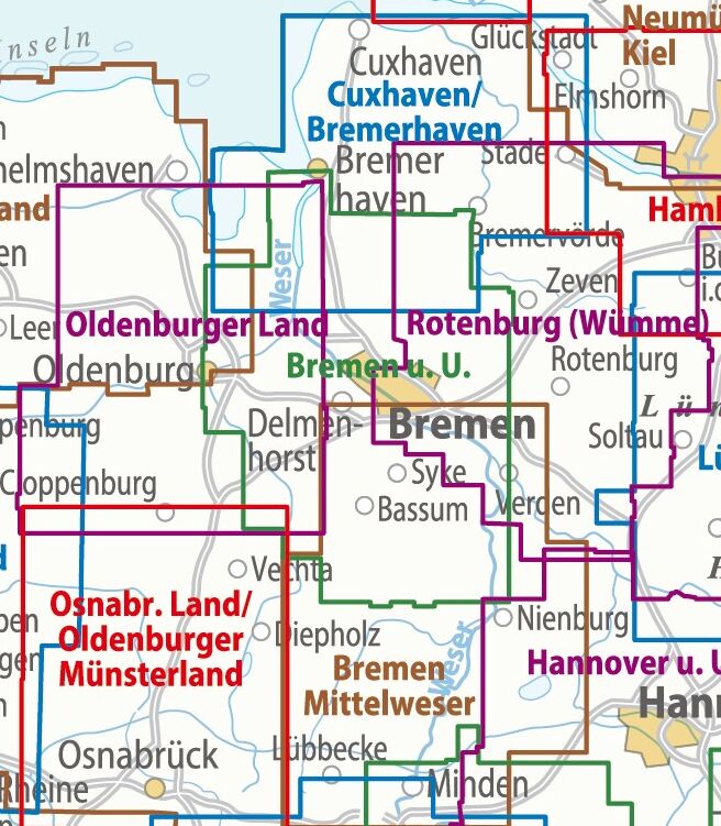 Offizielle Karte des ADFC Allgemeiner Deutscher Fahrrad-Club e.V. die ideale Karte für Planung und Durchführung von Tages- und Wochenendradtouren. Auf einem großen Gebiet von bis zu 70 x 100 Kilometern findet sich alles, was Radler brauchen. Routen, Tagestoure...