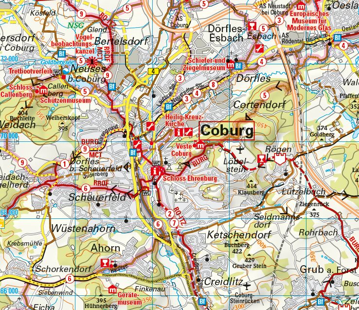 ADFC-Regionalkarte Coburg Bamberg, 1:75.000, mit Tagestourenvorschlägen, reiß- und wetterfest, E-Bike-geeignet, GPS-Tracks Download