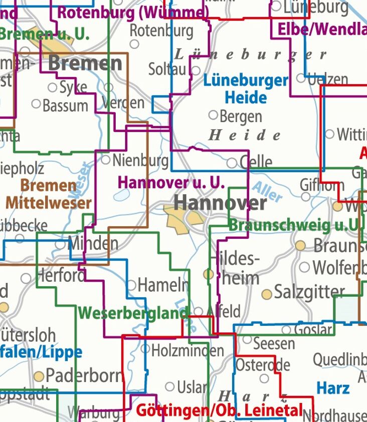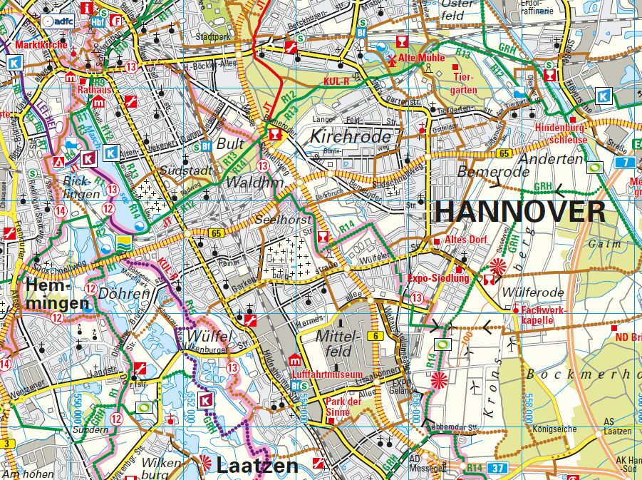 Offizielle Karte des ADFC Allgemeiner Deutscher Fahrrad-Club e.V. die ideale Karte für Planung und Durchführung von Tages- und Wochenendradtouren. Auf einem großen Gebiet von bis zu 70 x 100 Kilometern findet sich alles, was Radler brauchen. Routen, Tagestoure...