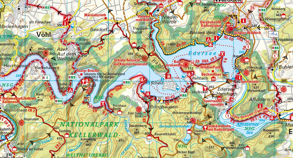 Offizielle Karte des ADFC Allgemeiner Deutscher Fahrrad-Club e.V. die ideale Karte für Planung und Durchführung von Tages- und Wochenendradtouren. Auf einem großen Gebiet von bis zu 70 x 100 Kilometern findet sich alles, was Radler brauchen. Routen, Tagestoure...