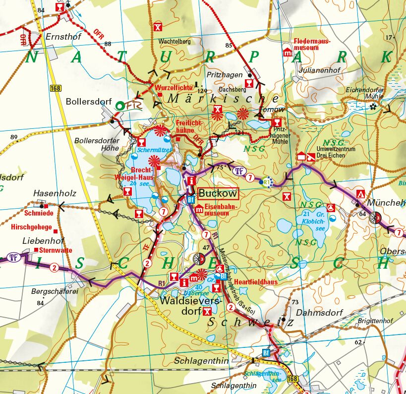 Offizielle Karte des ADFC Allgemeiner Deutscher Fahrrad-Club e.V. die ideale Karte für Planung und Durchführung von Tages- und Wochenendradtouren. Auf einem großen Gebiet von bis zu 70 x 100 Kilometern findet sich alles, was Radler brauchen. Routen, Tagestoure...