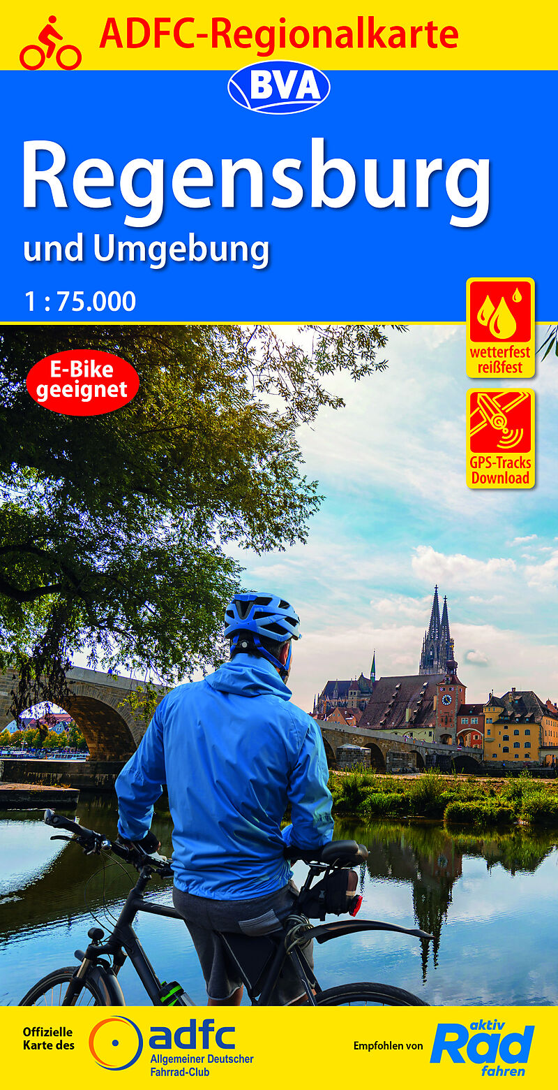 ADFC-Regionalkarte Regensburg und Umgebung, 1:75.000, mit Tagestourenvorschlägen, reiß- und wetterfest, E-Bike-geeignet, GPS-Tracks Download
