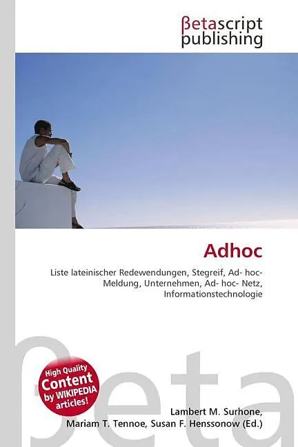 Please note that the content of this book primarily consists of articles available from Wikipedia or other free sources online. ShorttitleAd hoc (v. lat. für zu diesem , hierfür ) ist eine lateinische Phrase und bedeutet für diesen Augenblick gemacht oder zur ...
