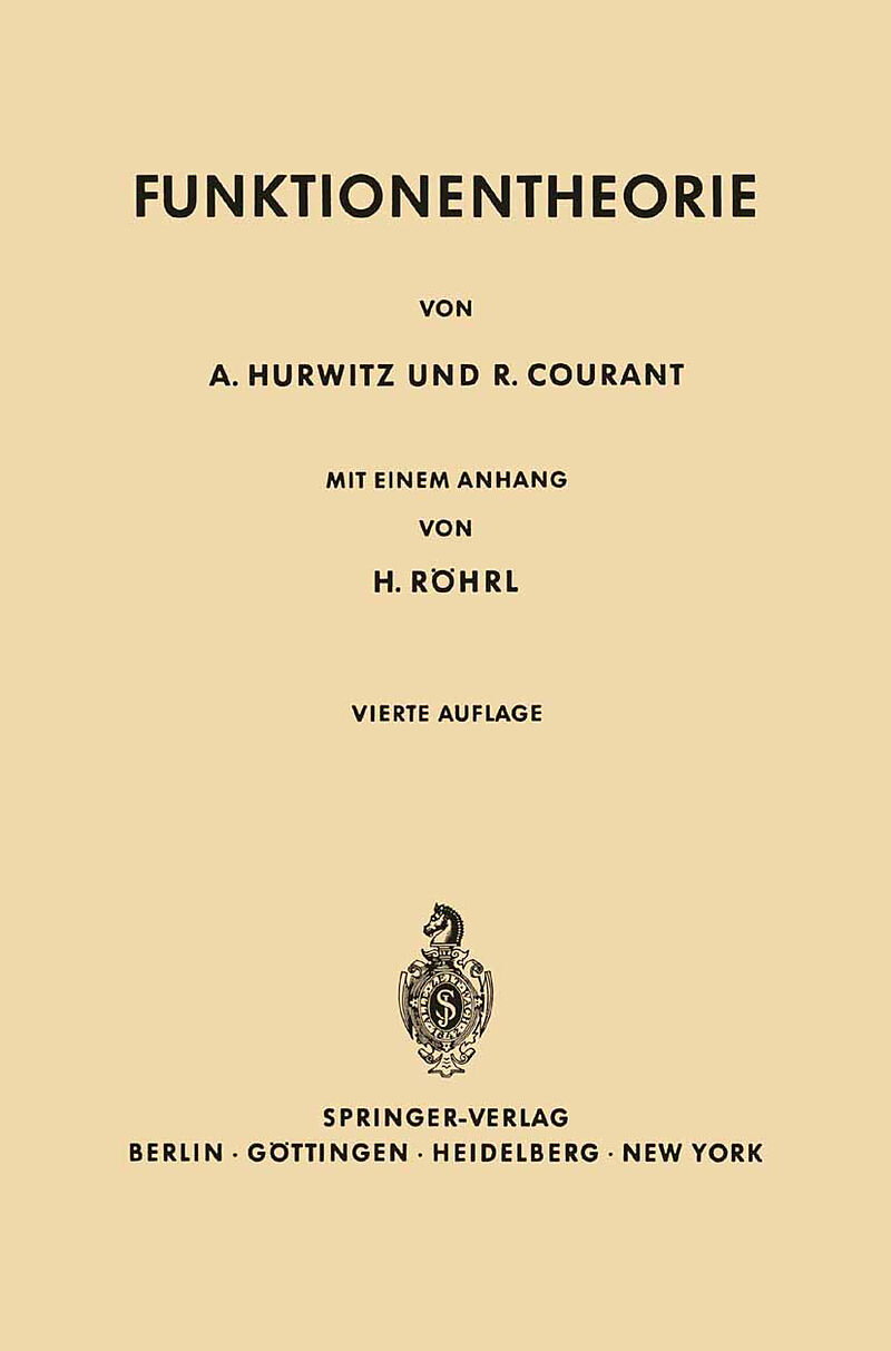 Vorwort zur dritten Auflage Auch in der dritten Auflage haben die von HURWITZ herriihrenden beiden erst en Abschnitte keine Anderungen erfahren, abgesehen von Verbesserungen und Erganzungen in Einzelheiten. Der dritte Abschnitt jedoch ist wiederum in vielen Pu...Vorwort zur dritten Auflage Auch in der dritten Auflage haben die von HURWITZ herriihrenden beiden erst en Abschnitte keine Anderungen erfahren, abgesehen von Verbesserungen und Erganzungen in Einzelheiten. Der dritte Abschnitt jedoch ist wiederum in vielen Punkten erweitert und umgestaltet worden. Es solI dadurch erreicht werden, daB er eine wirklich vollstandig un abhangig von den vorangehenden Abschnitten lesbare Darstellung der Funktionentheorie vom geometrischen Standpunkt aus gibt und auch den Zugang zu den neueren Spezialforschungen offnet. Eine kleine Ver mehrung des Umfanges war dabei nicht zu vermeiden. Gottingen, im Oktober 1929. R. COURANT. Vorwort zur vierten Auflage Seit dem Erscheinen der dritten Auflage ist die Theorie der Funk tionen einer komplexen Veranderlichen in mancher Hinsicht weiter ent wickelt worden, vielfach in der Richtung auf groBere Allgemeinheit und Abstraktion in der Form sowie in der Substanz. Als der Wunsch nach einer neuen Auflage von vielen Seiten ausgedriickt wurde, schien es un tunlich, einen veranderten Neudruck vorzulegen; das Problem entstand, wie den neueren Entwicklungen Rechnung getragen werden konnte, ohne den spezifischen Charakter des Werkes zu beeeintrachtigen.